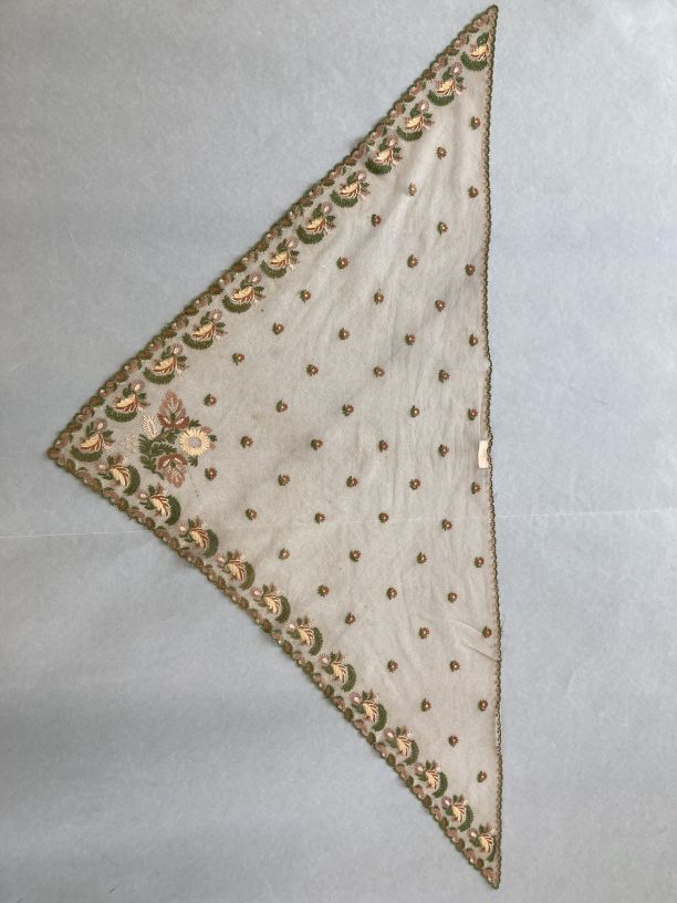 Fichu of tipdoek met getamboereerde rand van bloem- ...