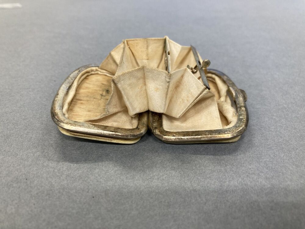 Beursje waarvan de zijbladen van been zijn, op de en...