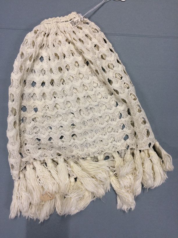 Gebreid lampenkleedje van wit katoen met franje