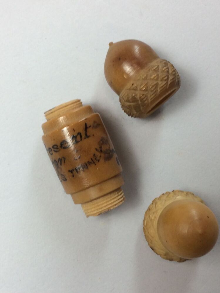 Naaldenkoker van gedraaid been, in drie delen uitsch...