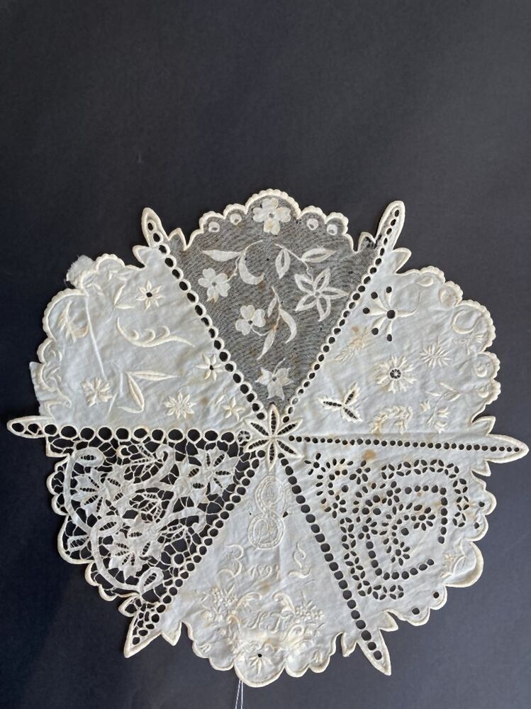 Fichu van wit katoenen tule versierd met tamboureerw...