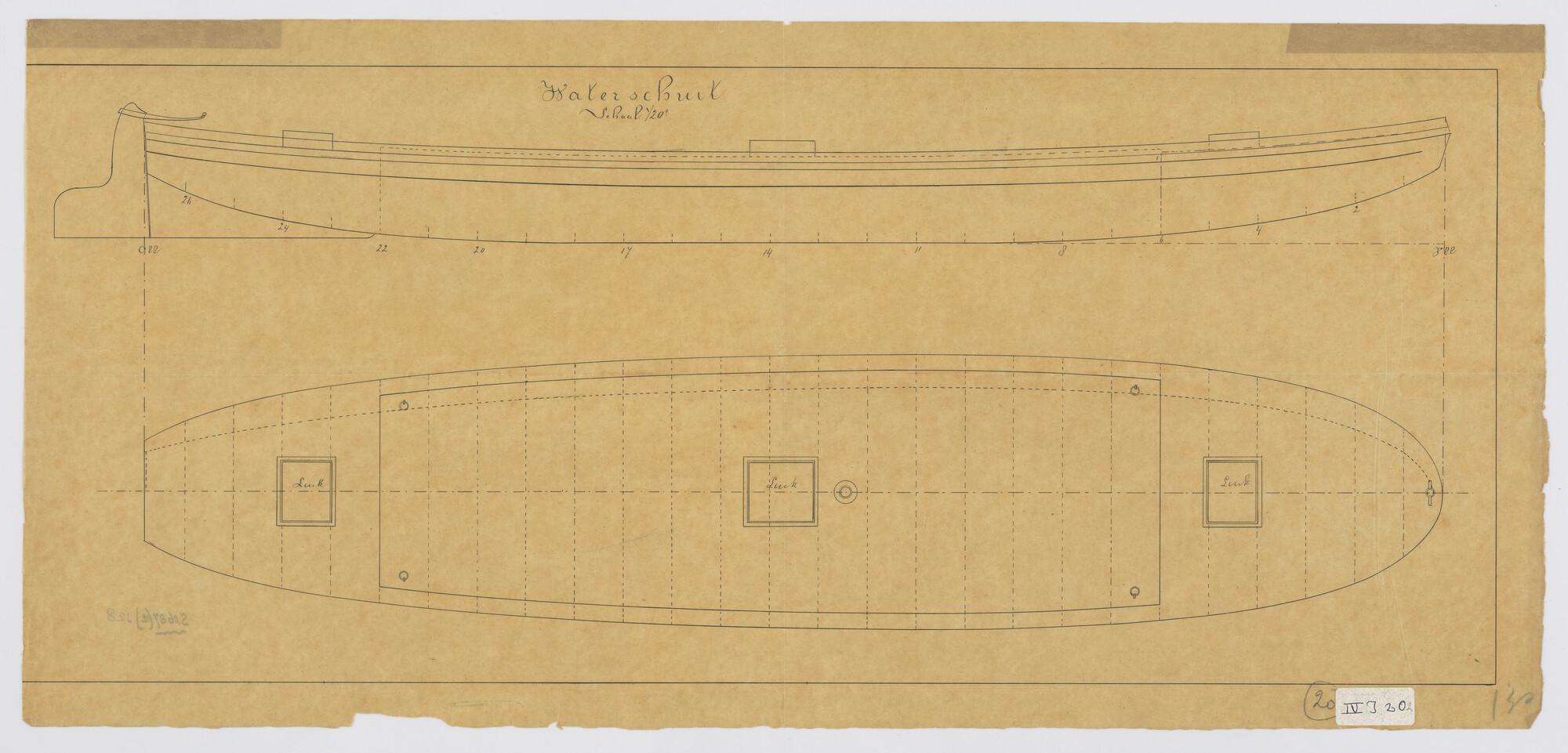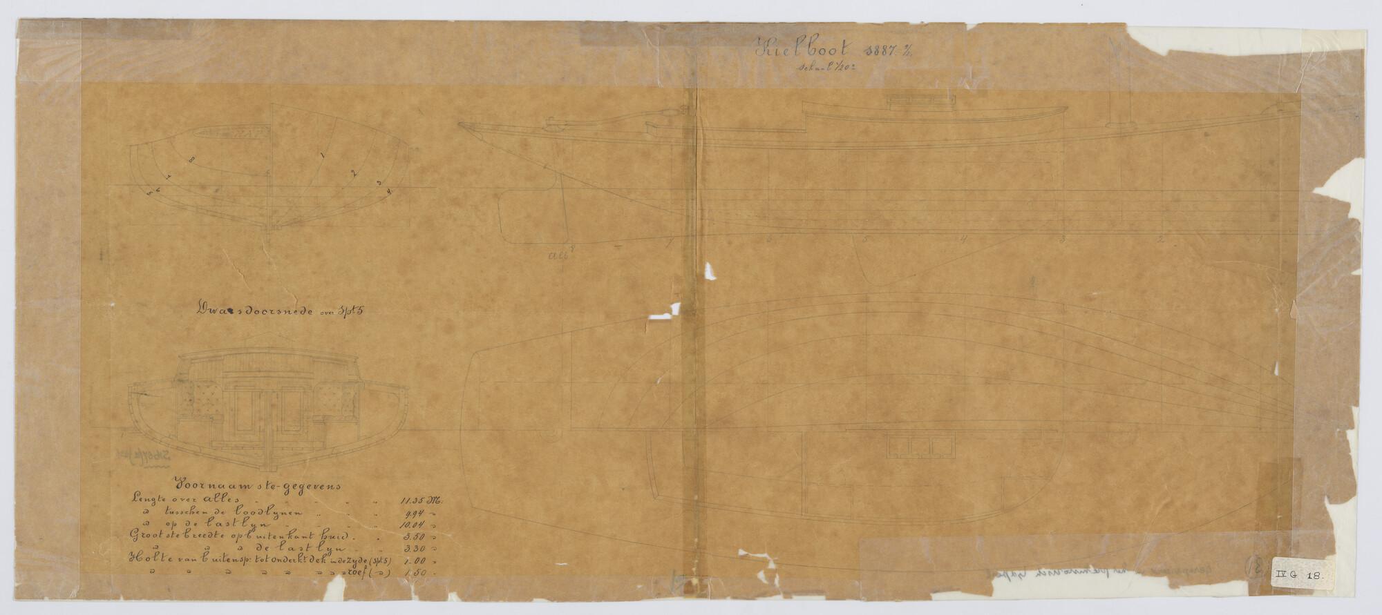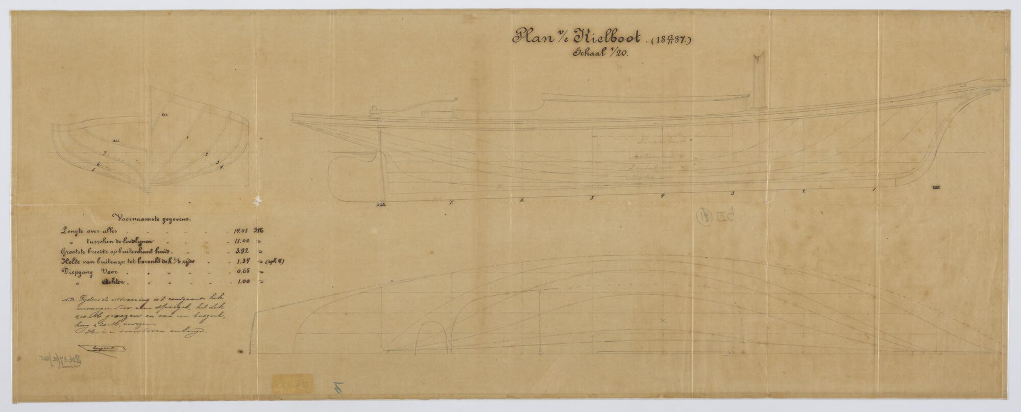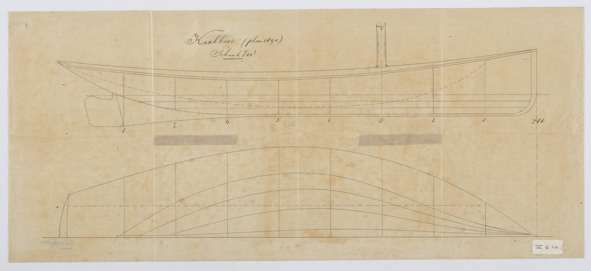 Lijnenplan van een kielboot, 1800 - 1899
