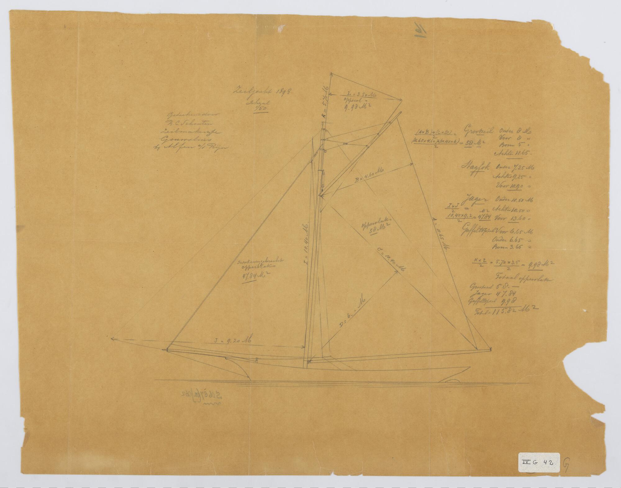Zijaanzicht met zeilplan, Midzwaardjacht 1885