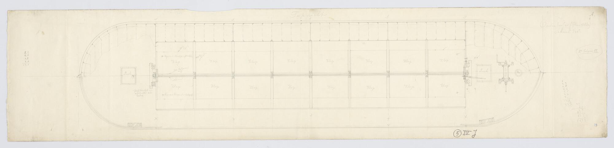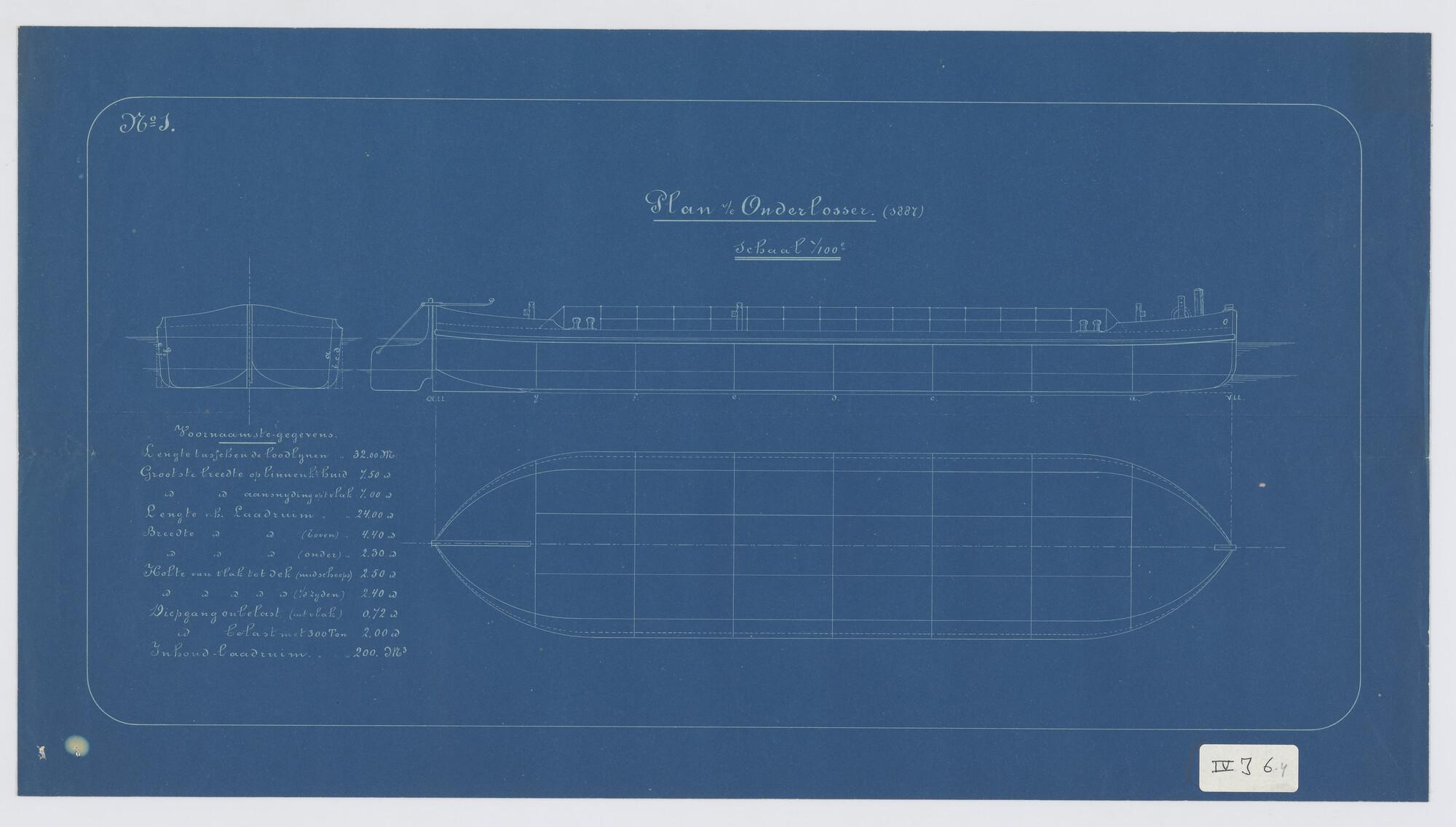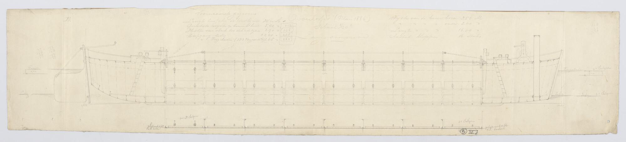 Lijnenplan van een praam, 1889, afm.: 70.2 x 14.5 3/...