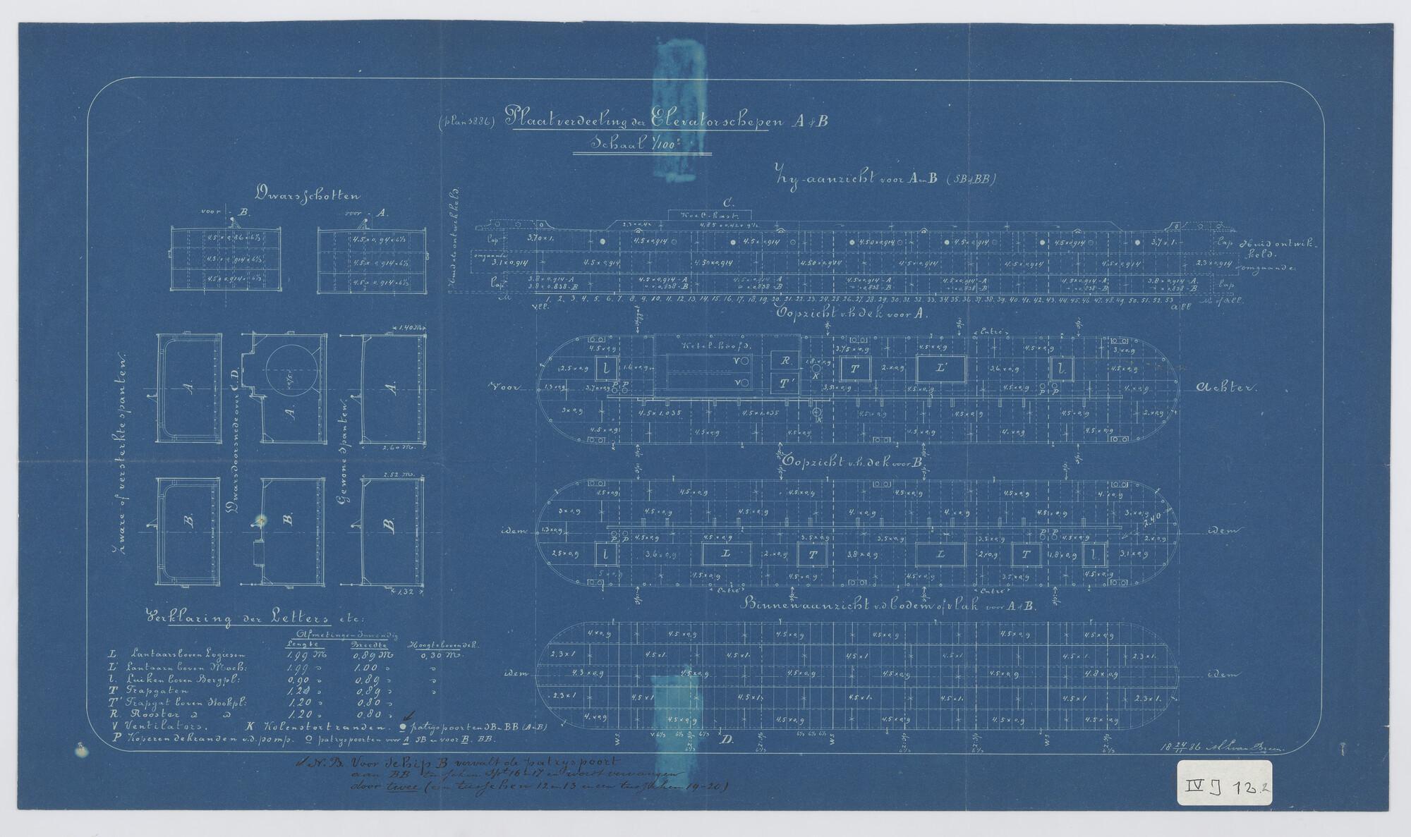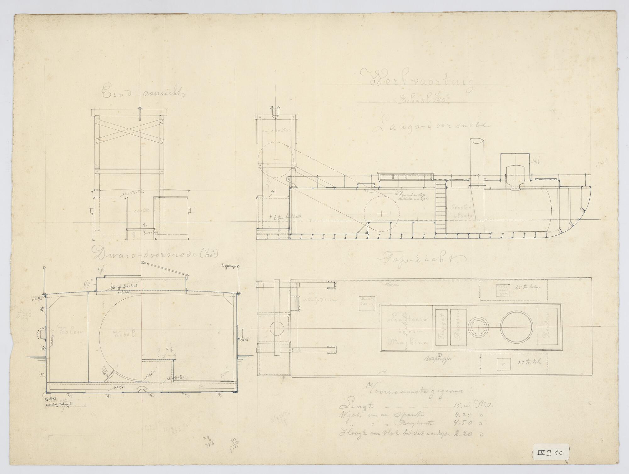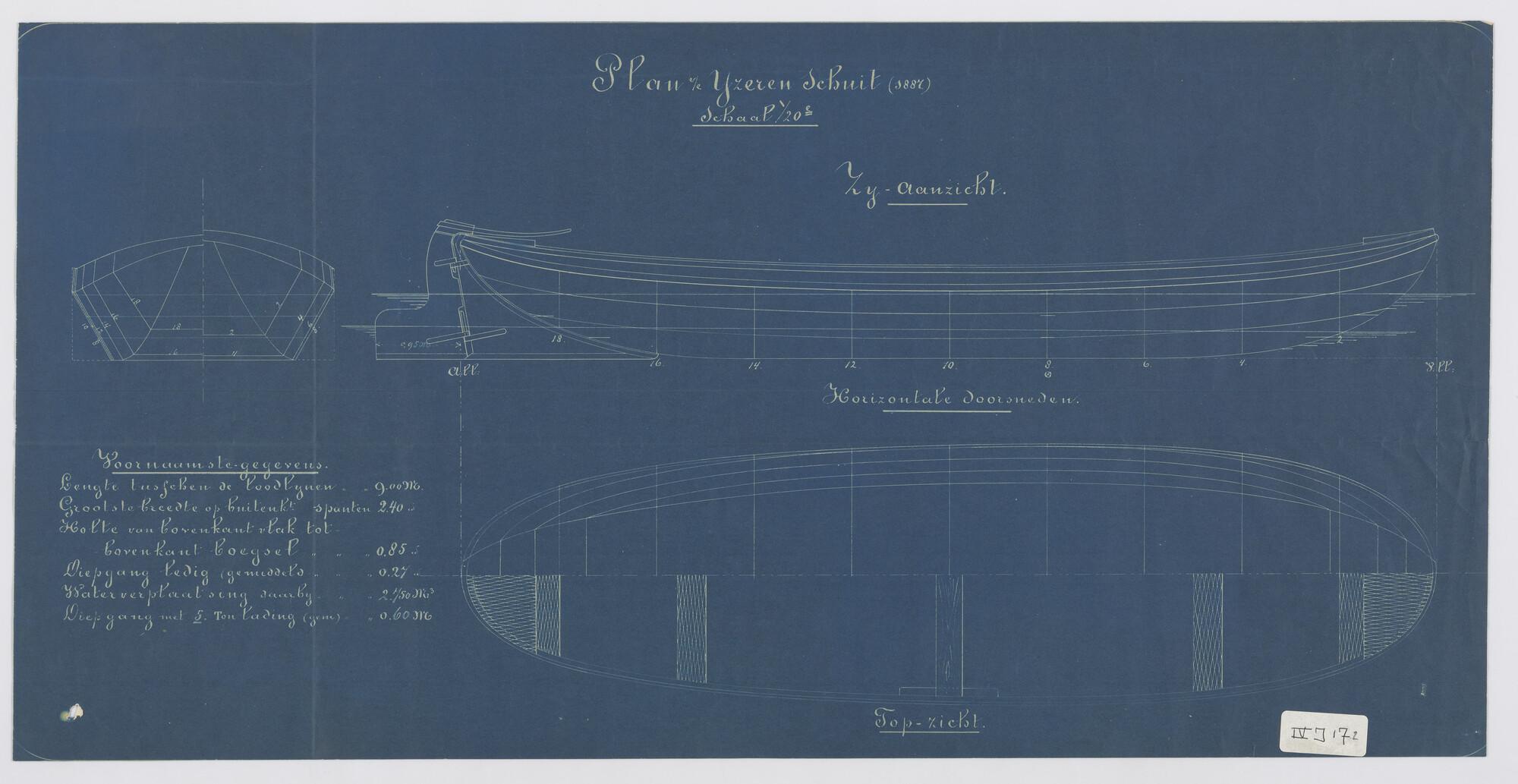 Stalen loodsschoener 1897: zijaanzicht, bovenaanzich...