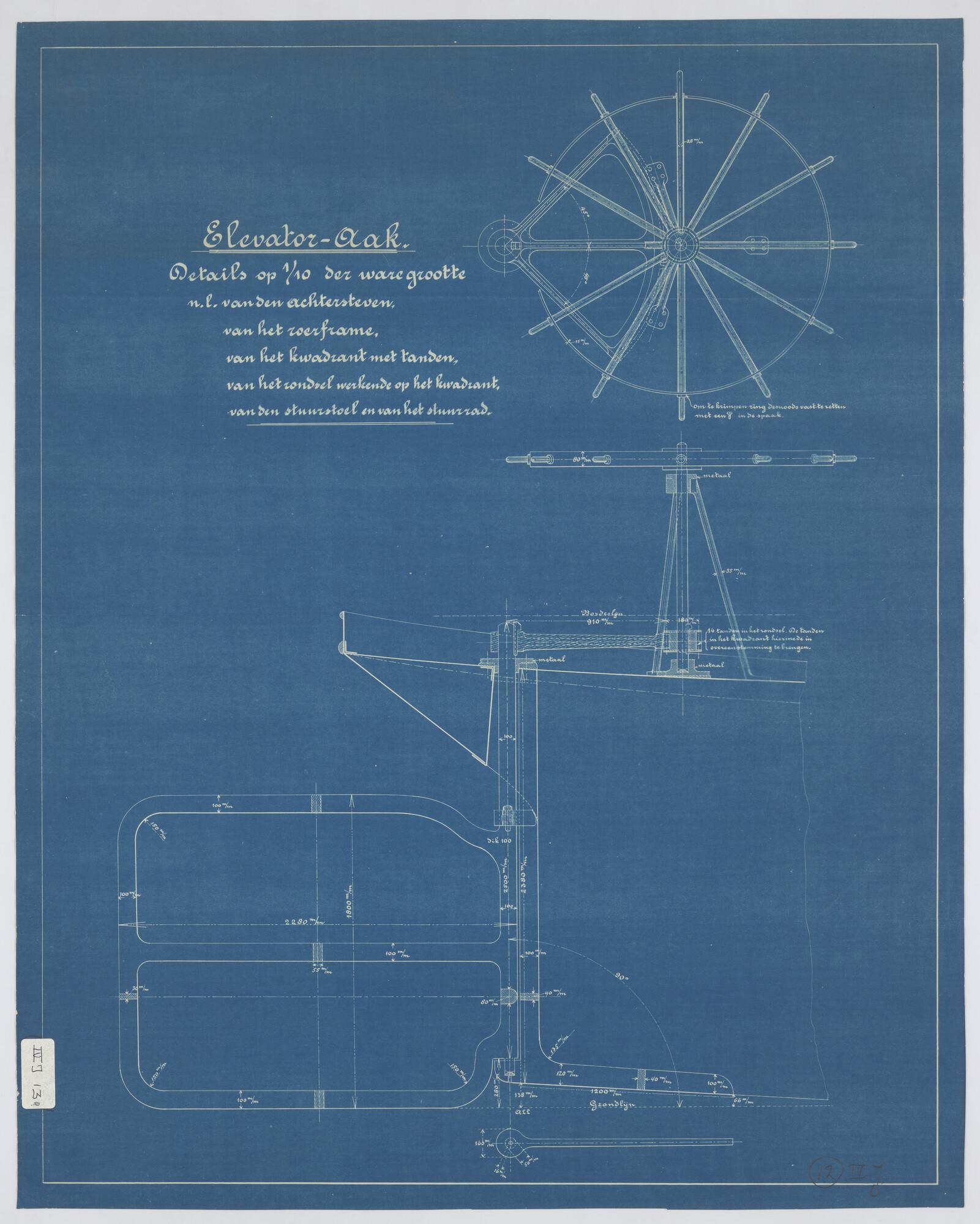 Zijaanzicht met zeilplan, spantenraam, lijnenplan va...