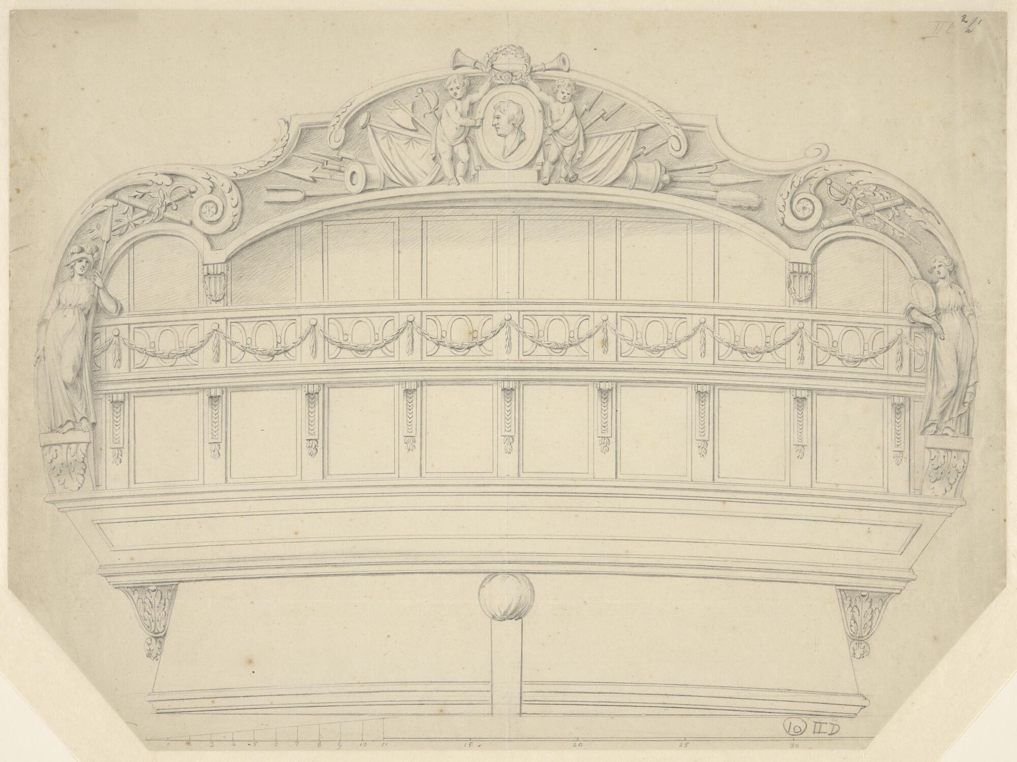 Spiegel en zijgalerij van een schip