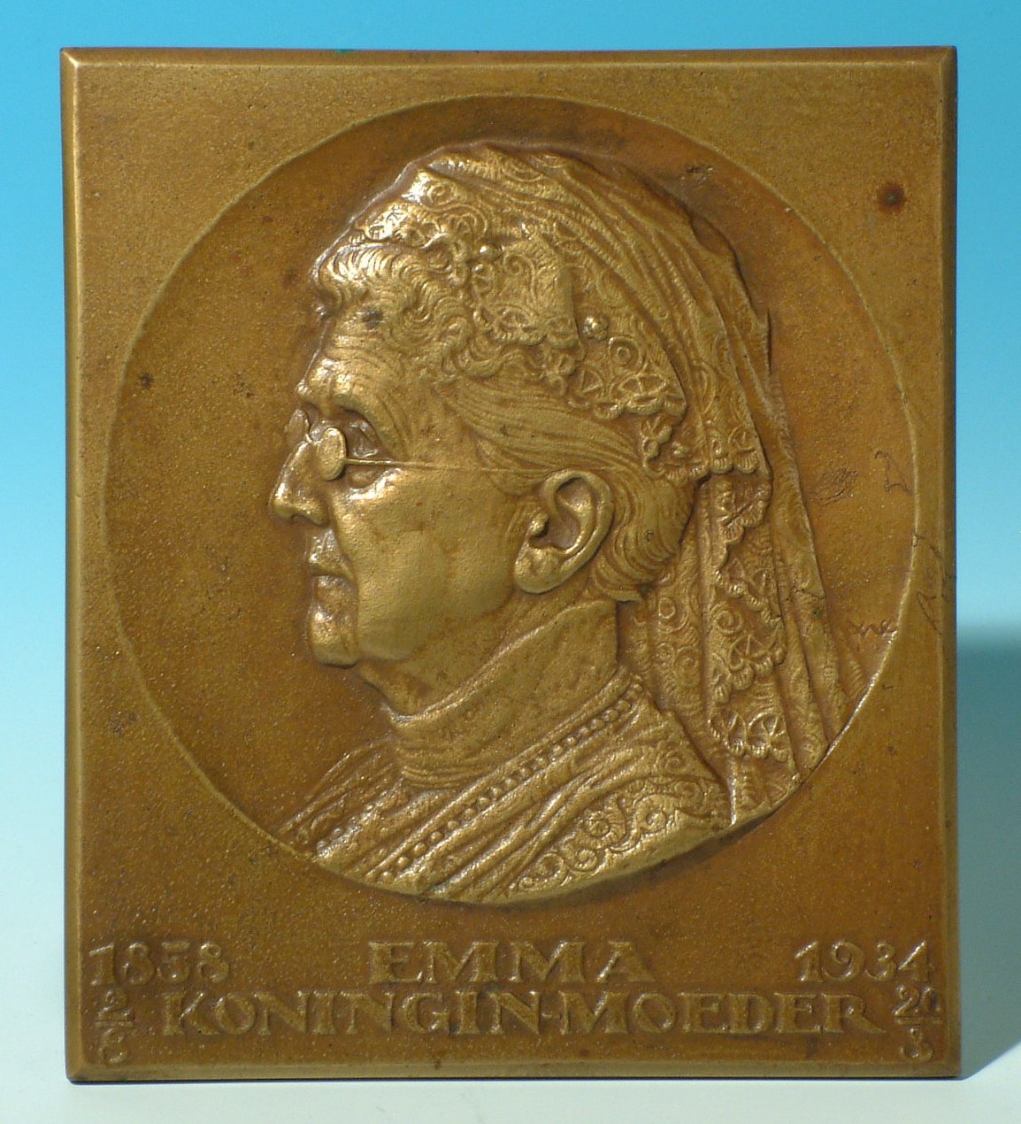 Plaquette met portret van Koningin Emma.
