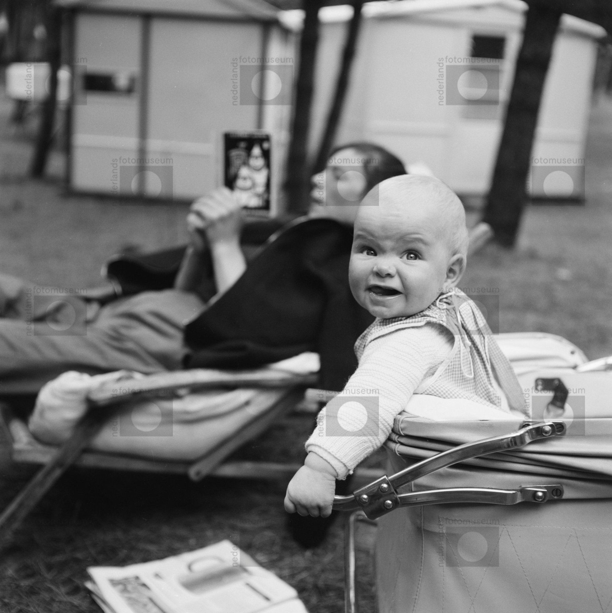 Bakkum, kampeerterrein. Janine, Ine lezend.