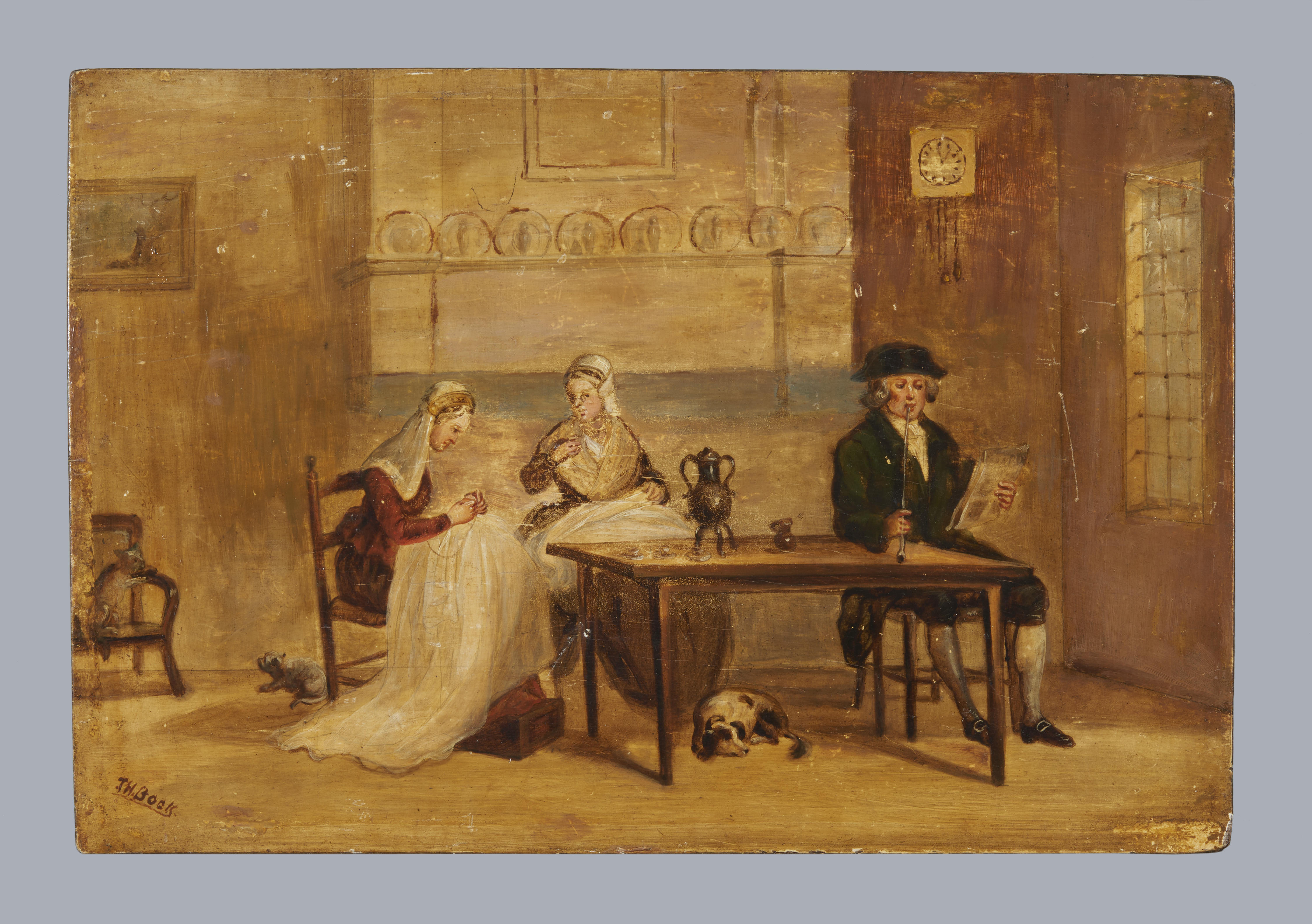 Twee vrouwen en een man in Noord-Hollands interieur,...