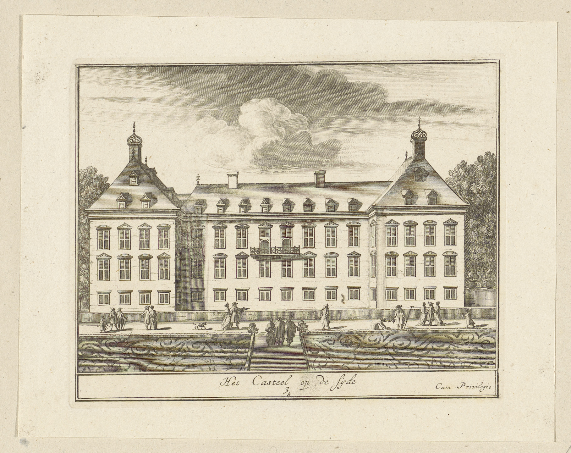 Paleis Honselaarsdijk van de zijkant gezien