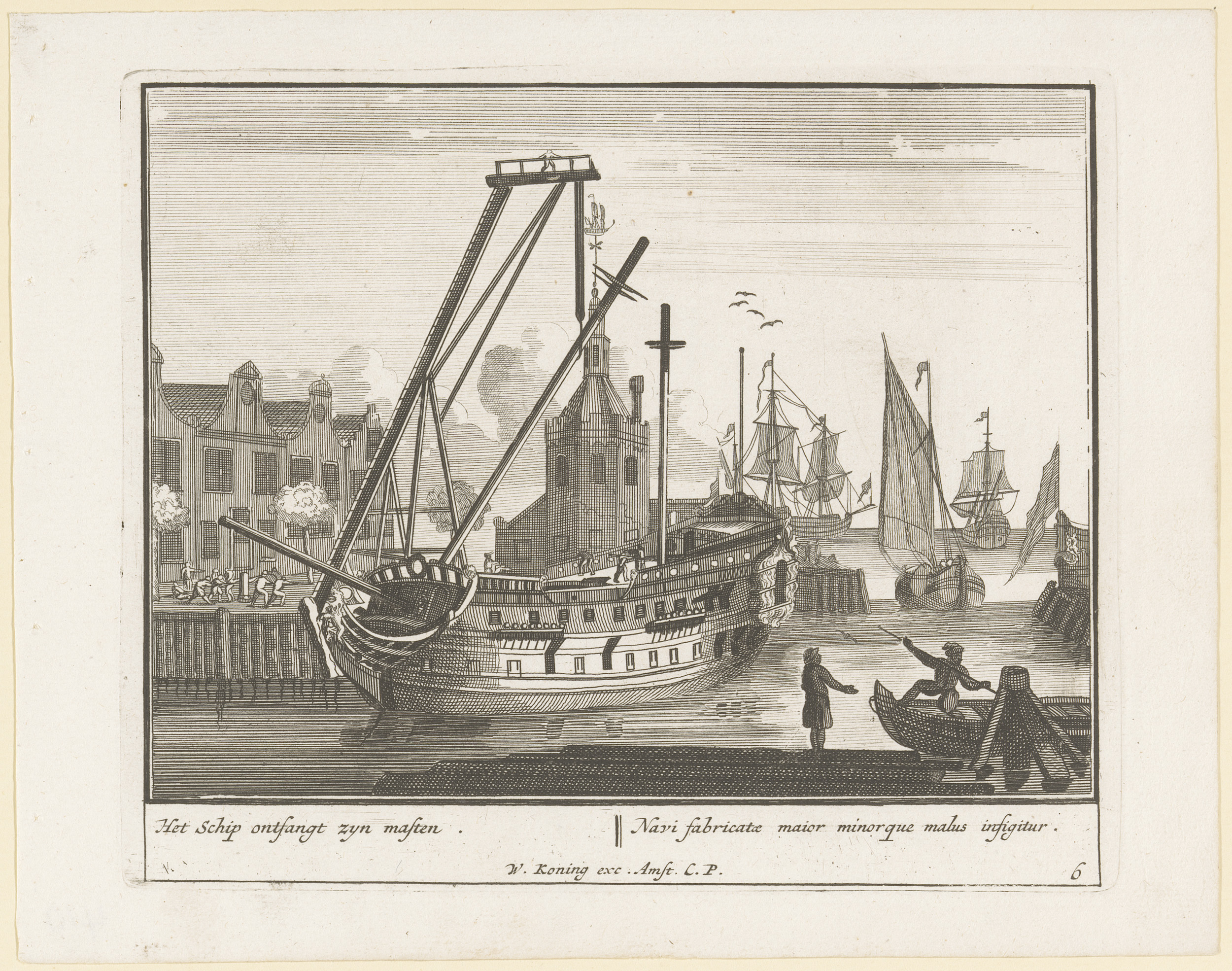 Aanbrengen van de masten op het schip