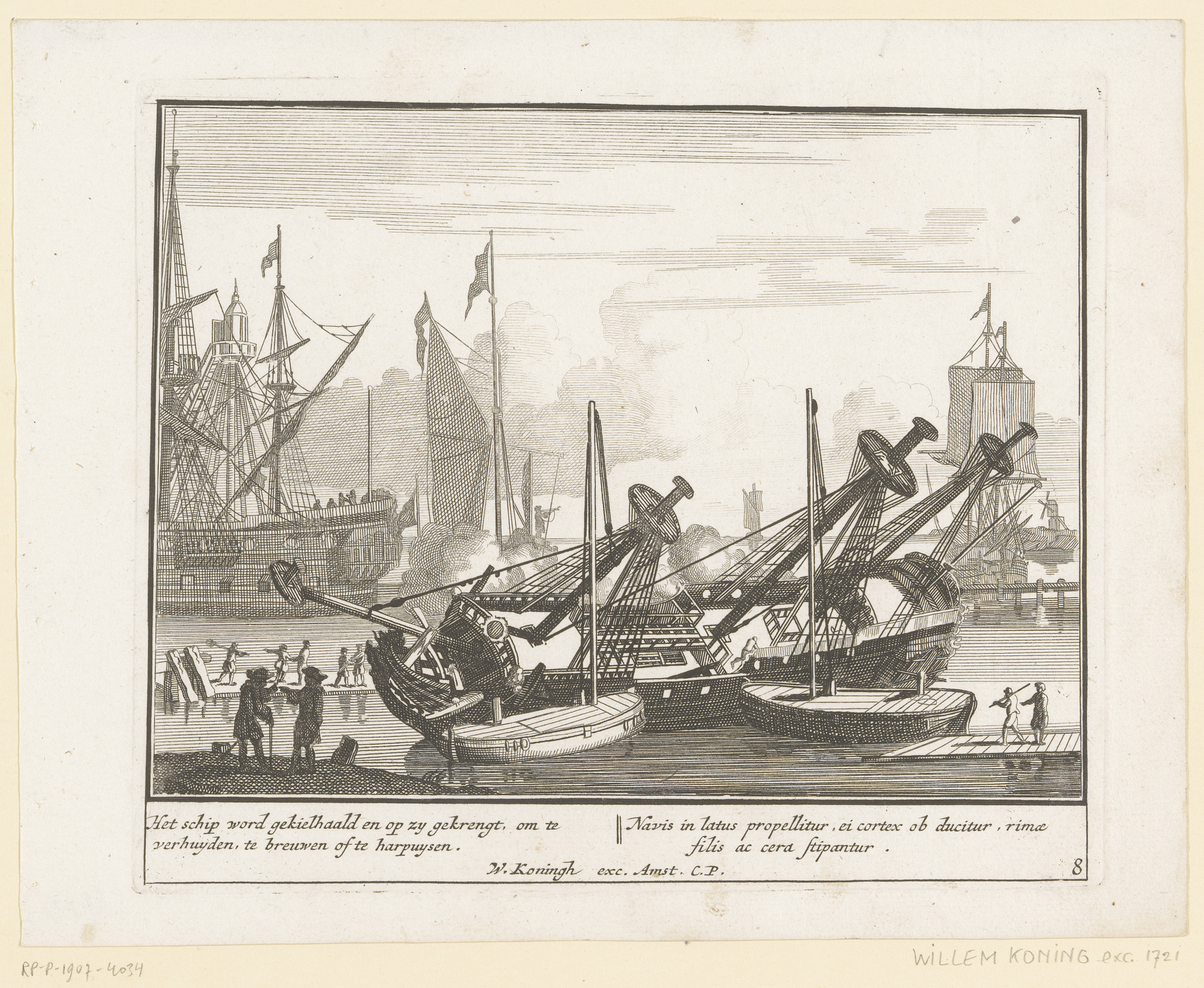 Schip wordt gekeerd om de bodem te breeuwen en harpu...