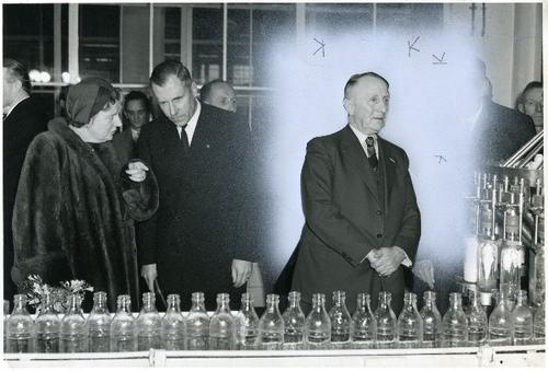 Foto in zwart-wit van het bezoek van H.M. Koningin J...