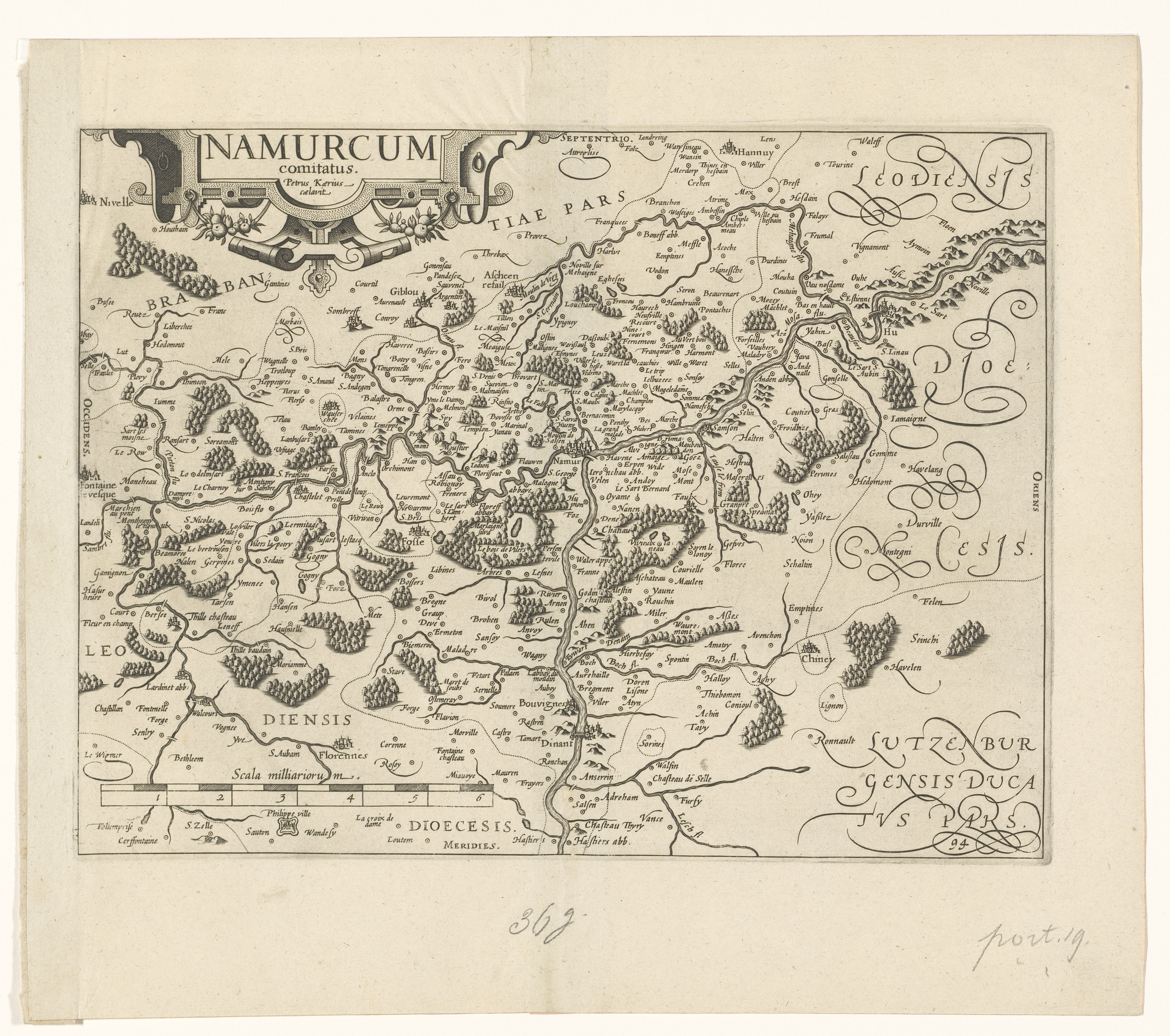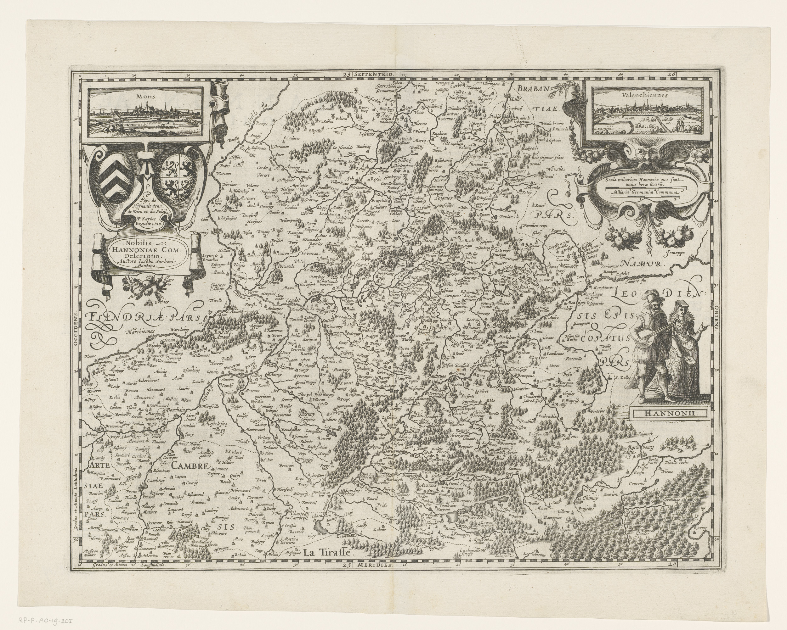 Kaart van het graafschap Henegouwen, met een gezicht...