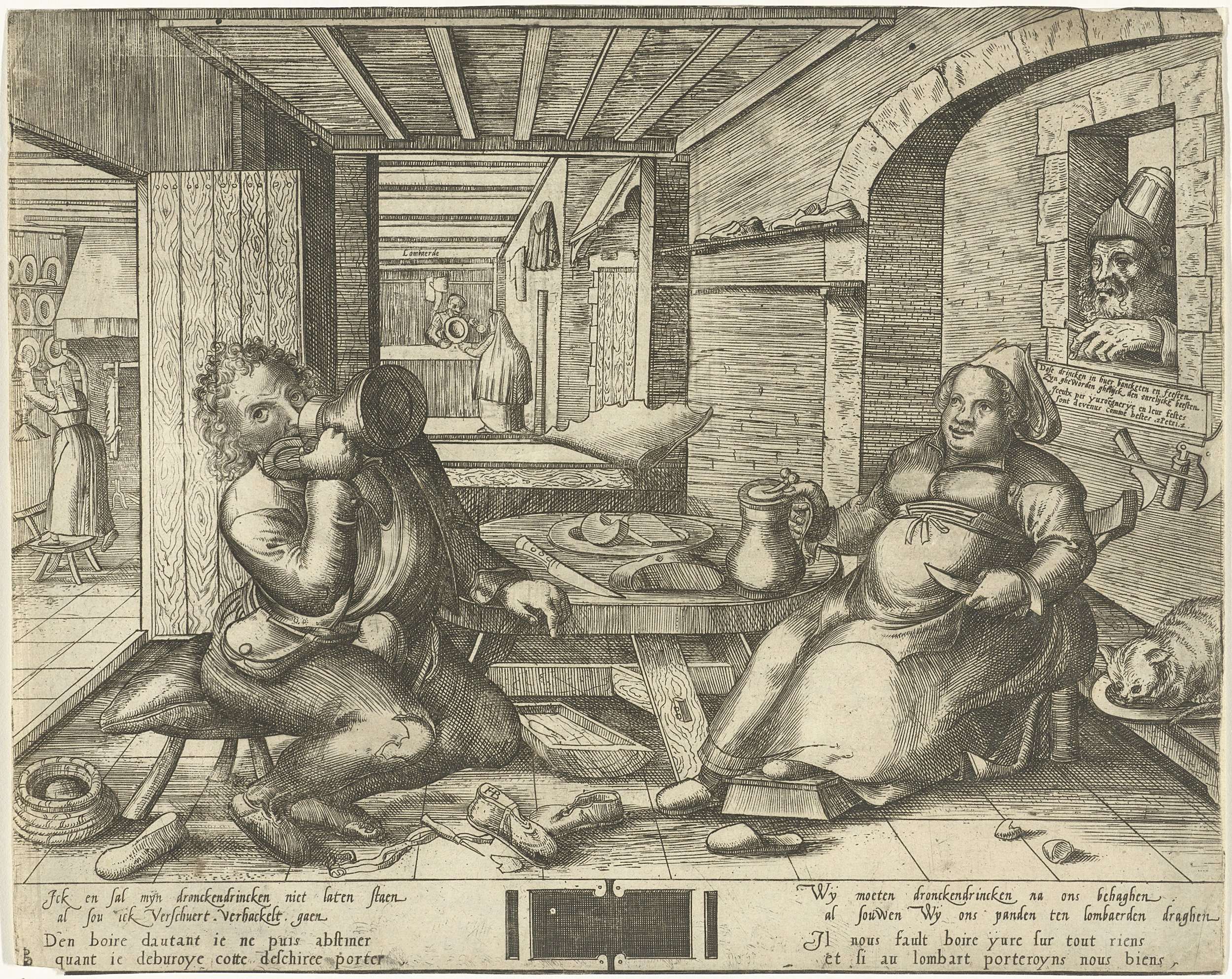 Schoenmaker en zijn vrouw, bier drinkend in een vertrek