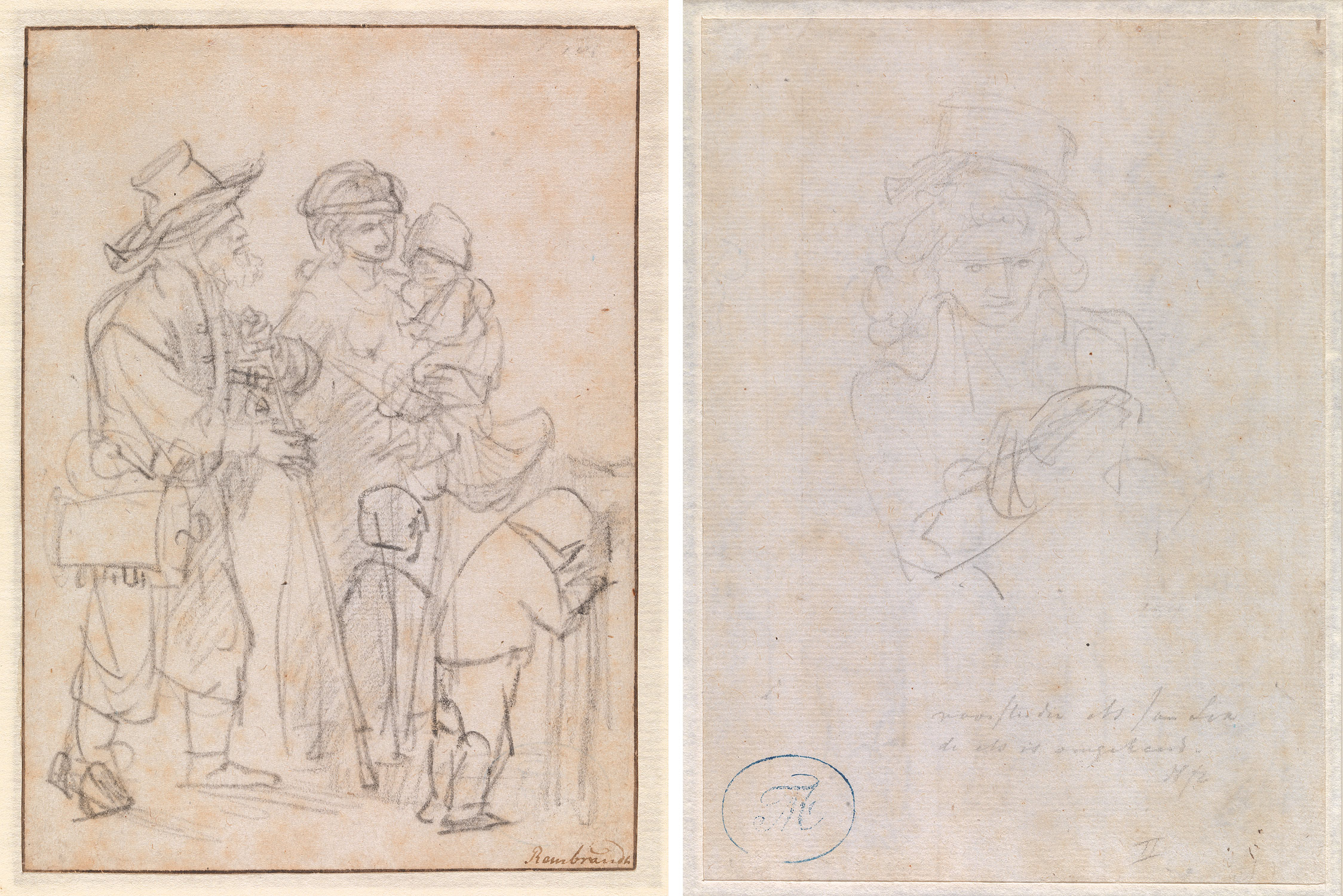 Een bedelaarsfamilie (recto). Studie voor een portre...