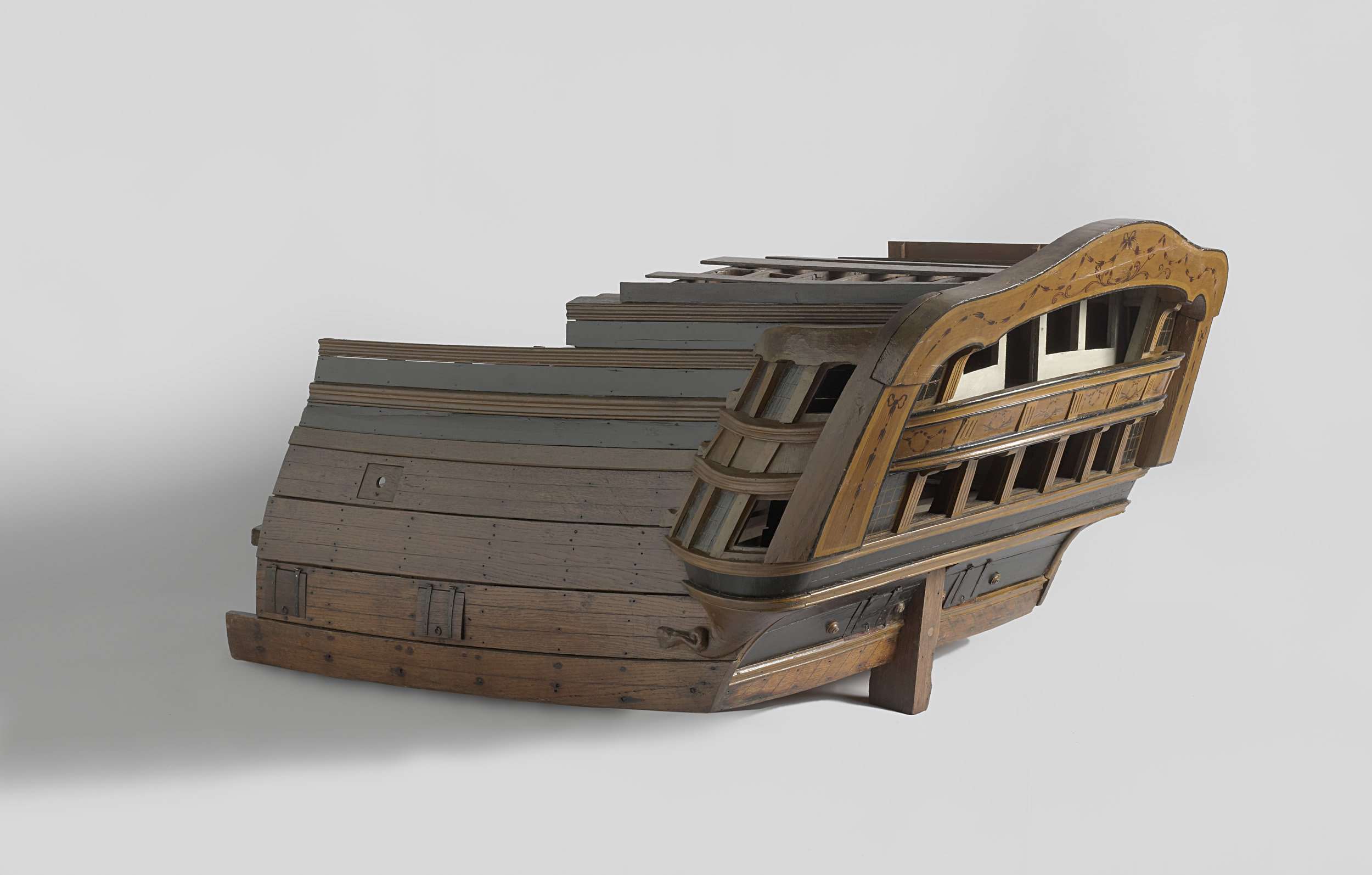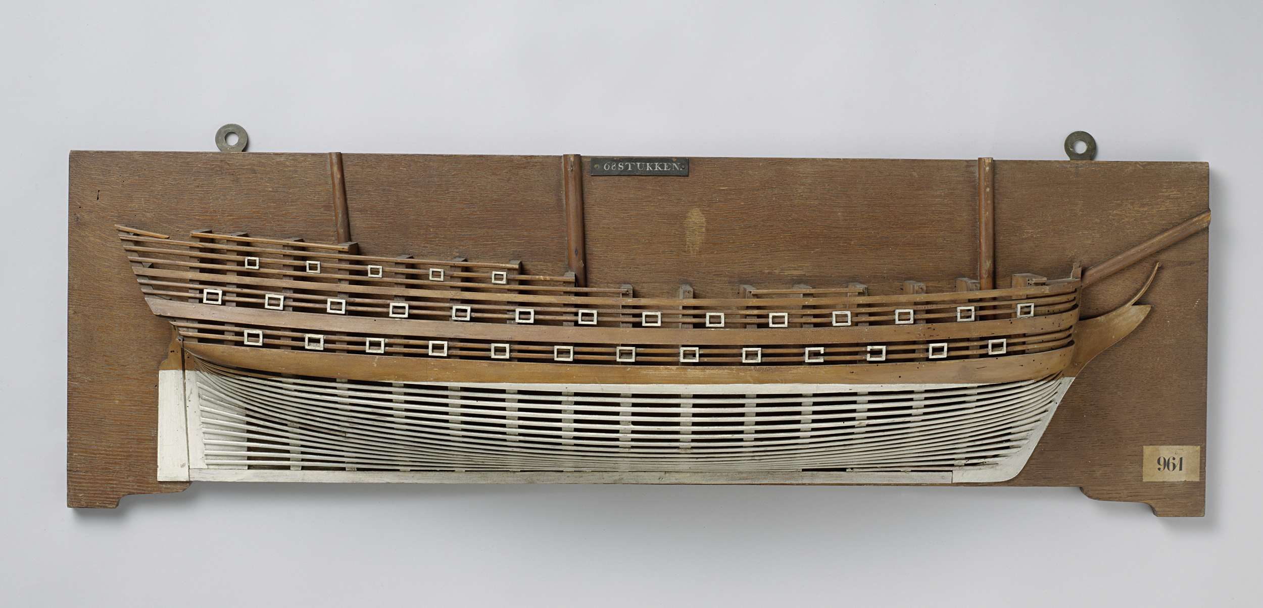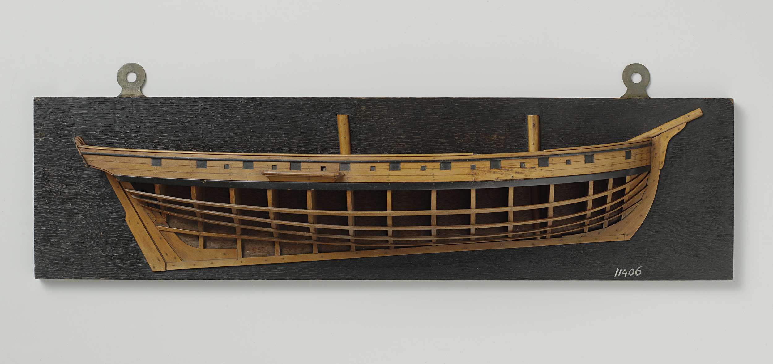 Halfmodel van een kanonneerschoener van 2 of 3 stukken