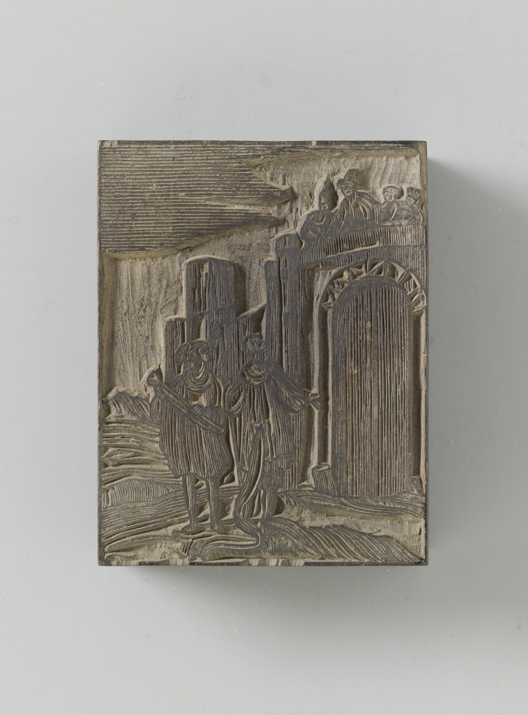 Scénes: Mensen in middeleeuwse kleding voor een poort