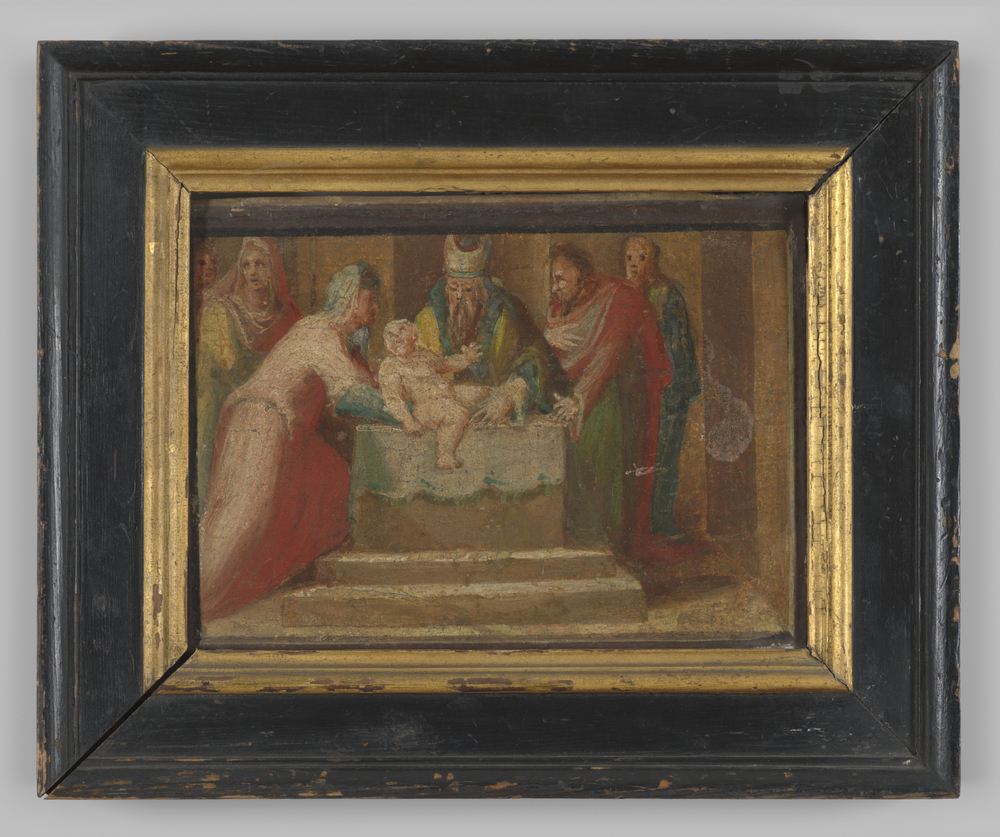 Paneelschildering "De opdracht in de tempel" op hout...