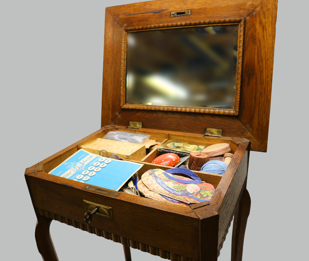 Naaitafel met een spiegel in het klepdeksel