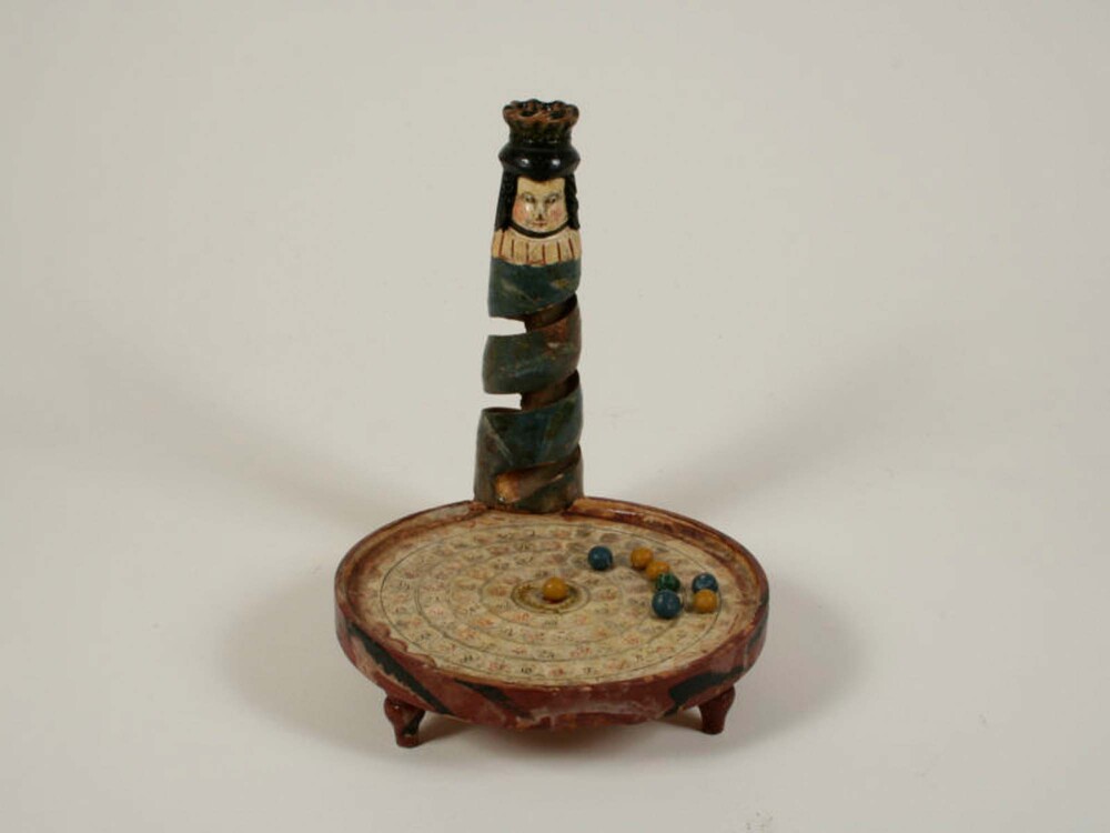 Knikkerspen "Kakelorum" uit circa 1860