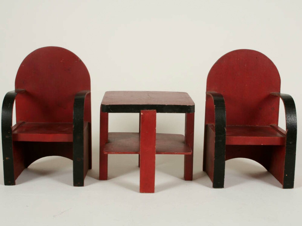 Poppentafel met twee armstoelen