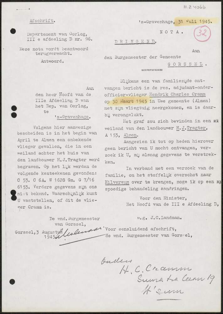 Rapport Gemeente Gorssel, 31 juli 1945..