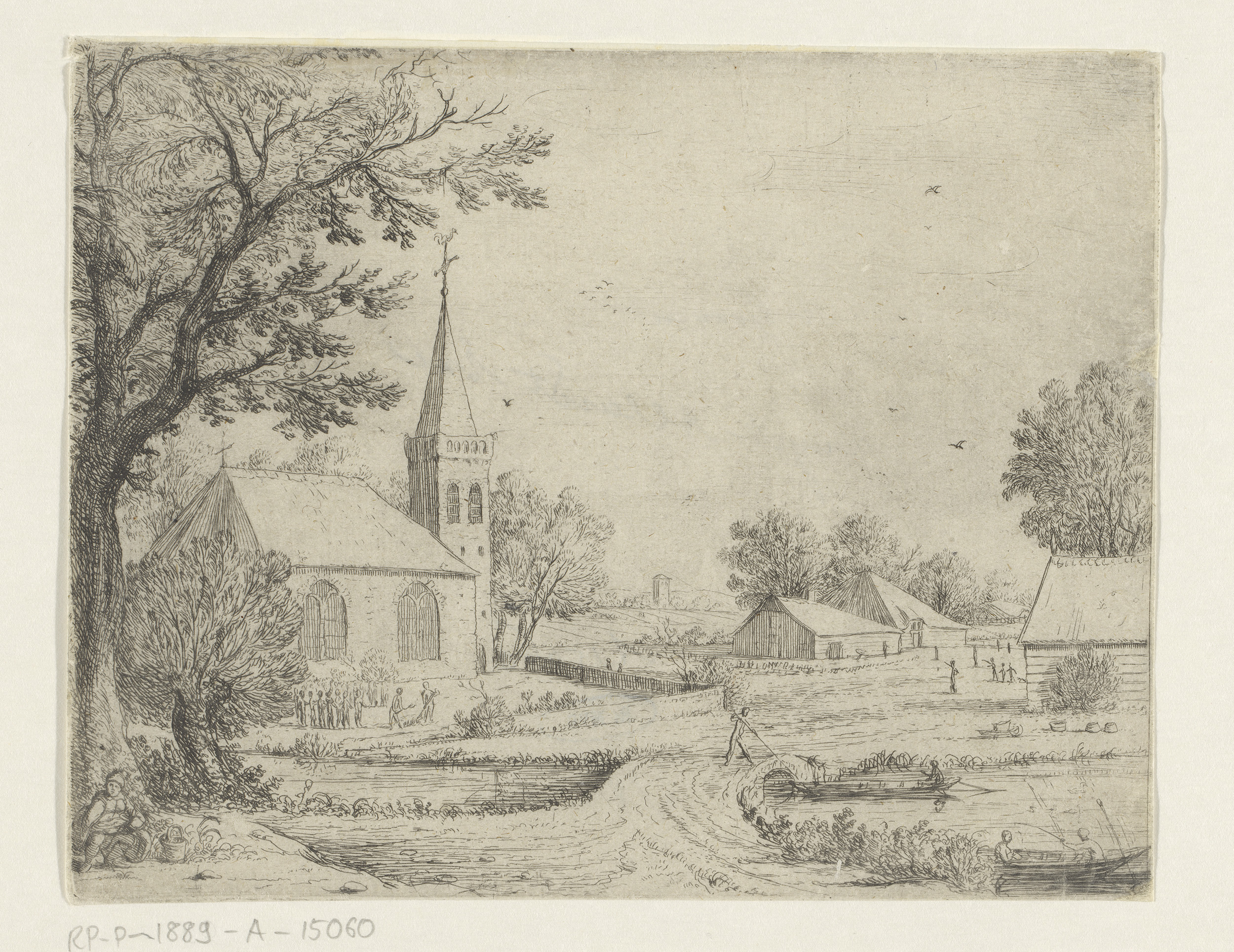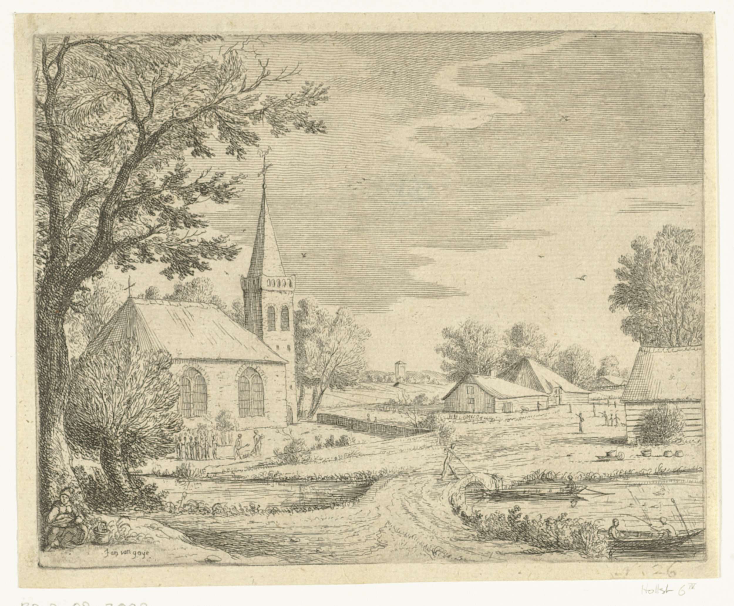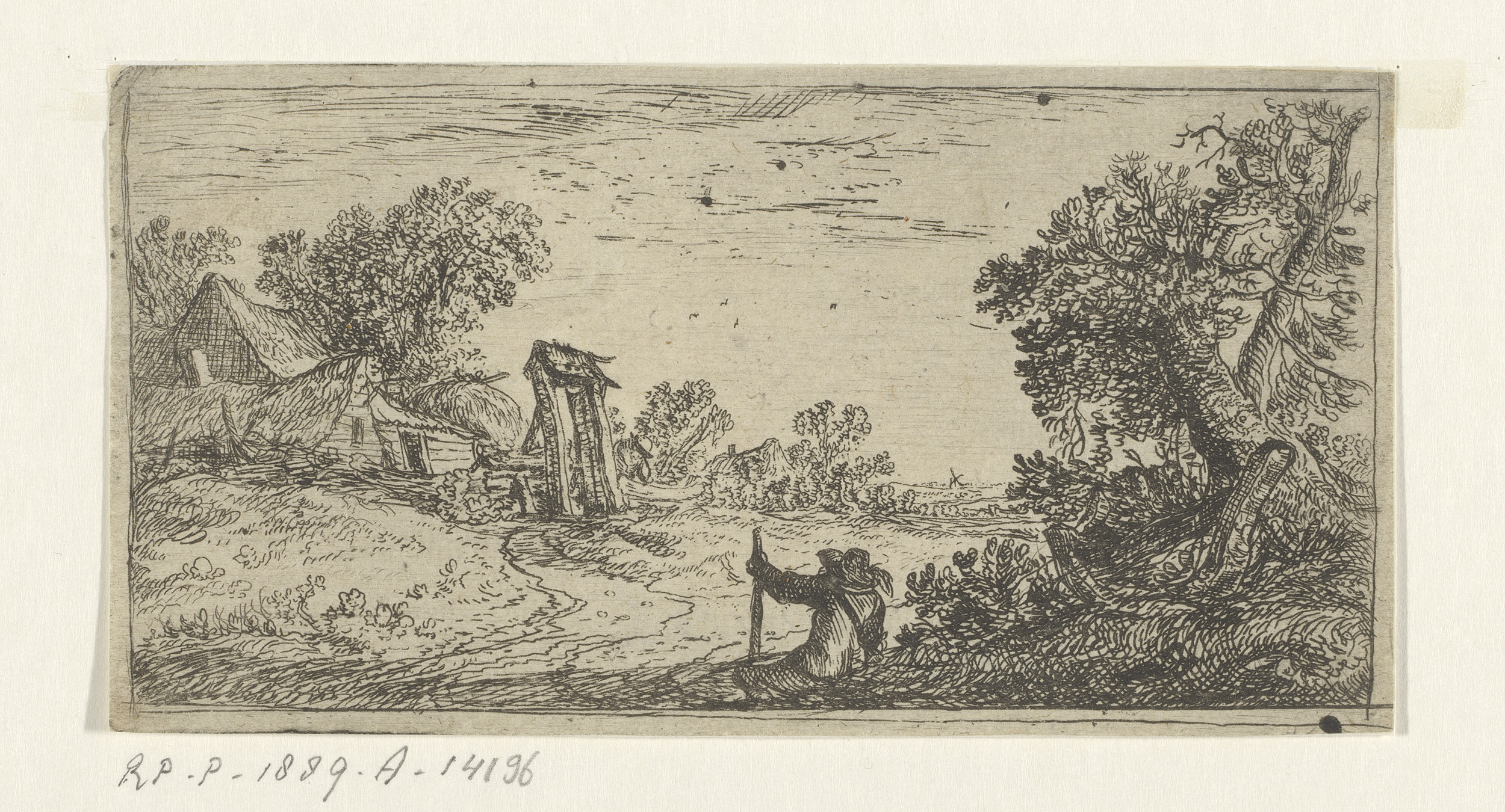 Dorpsgezicht met vrouw en kind in de dorpsstraat