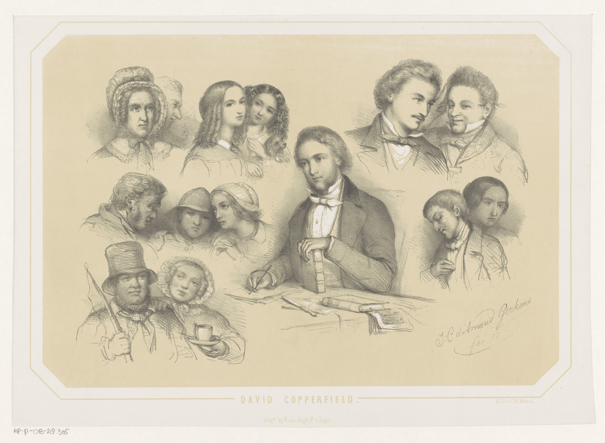 Charles Dickens te midden van figuren uit David Copp...