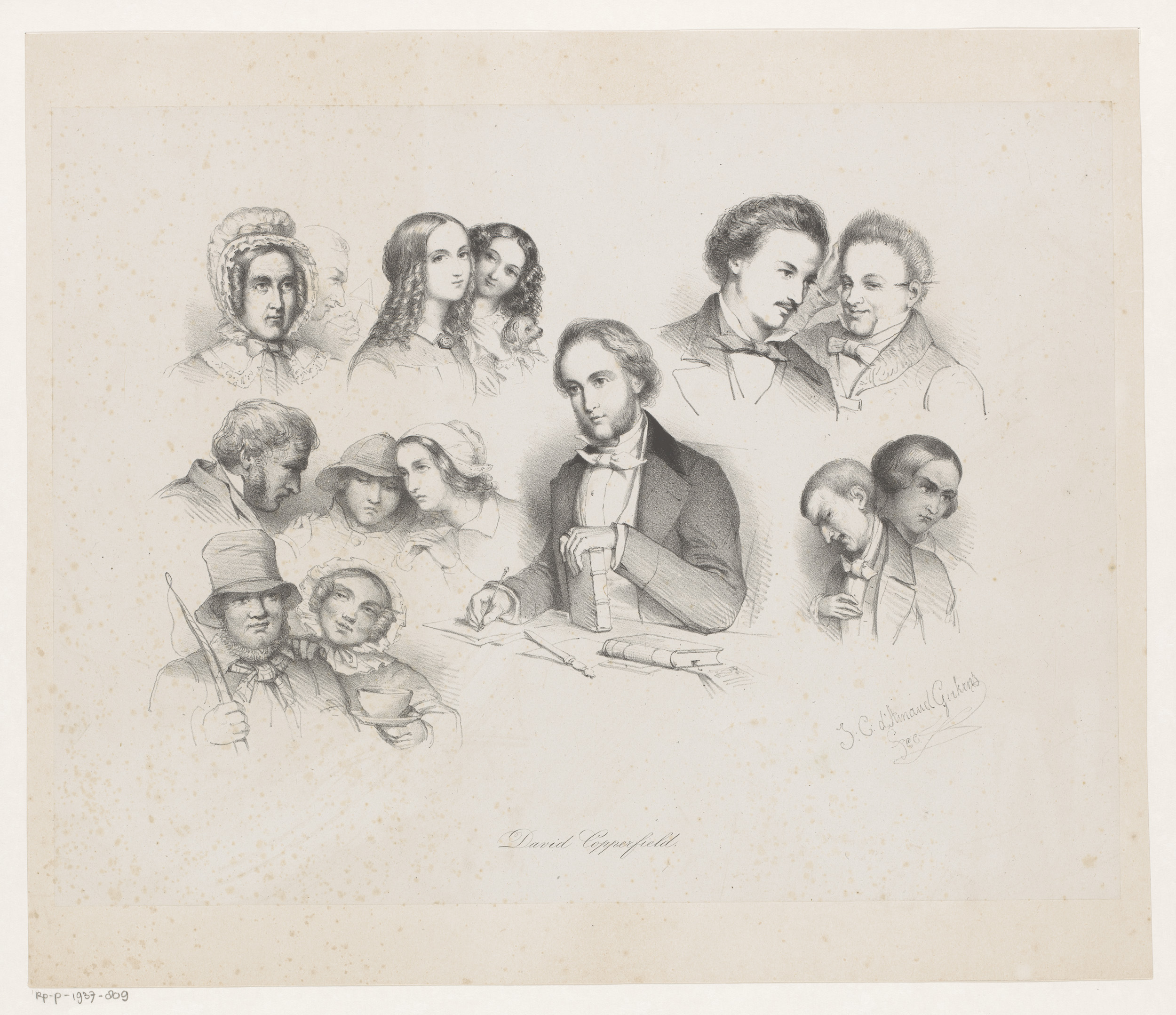 Charles Dickens te midden van figuren uit David Copp...
