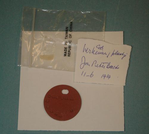 Identiteitsplaatje Nr. 90885 met een gat in het midd...