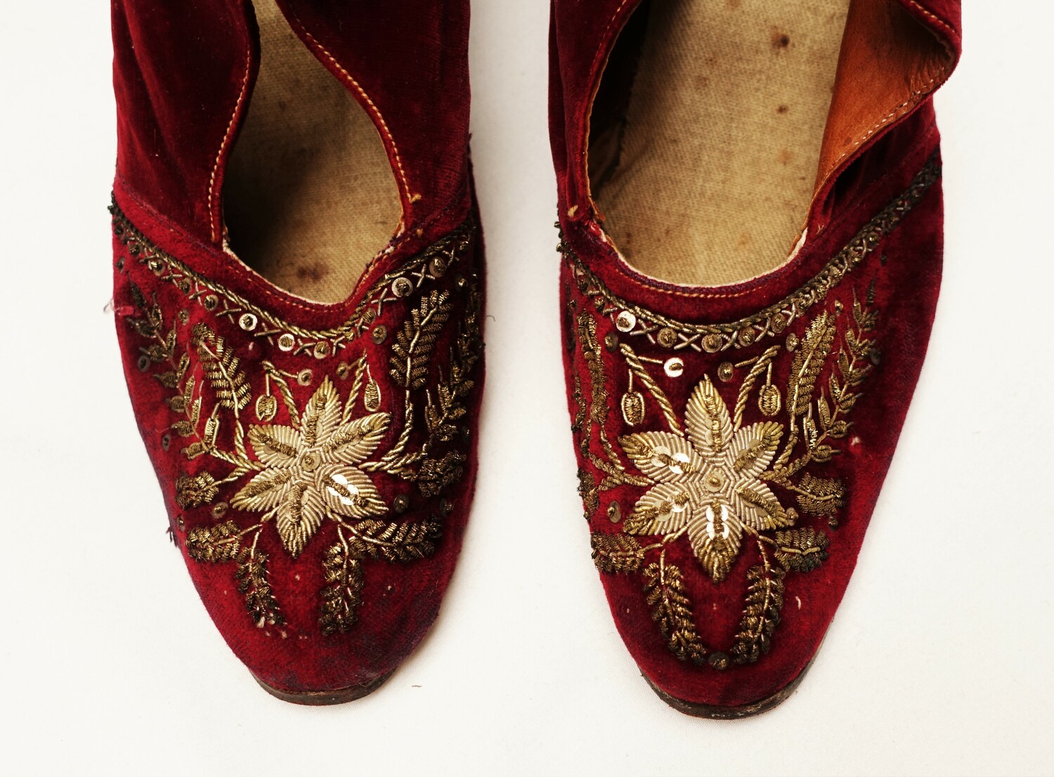 Hand made shoes factory woven (velvet) cloth hand embroidered (metal thread) (1)