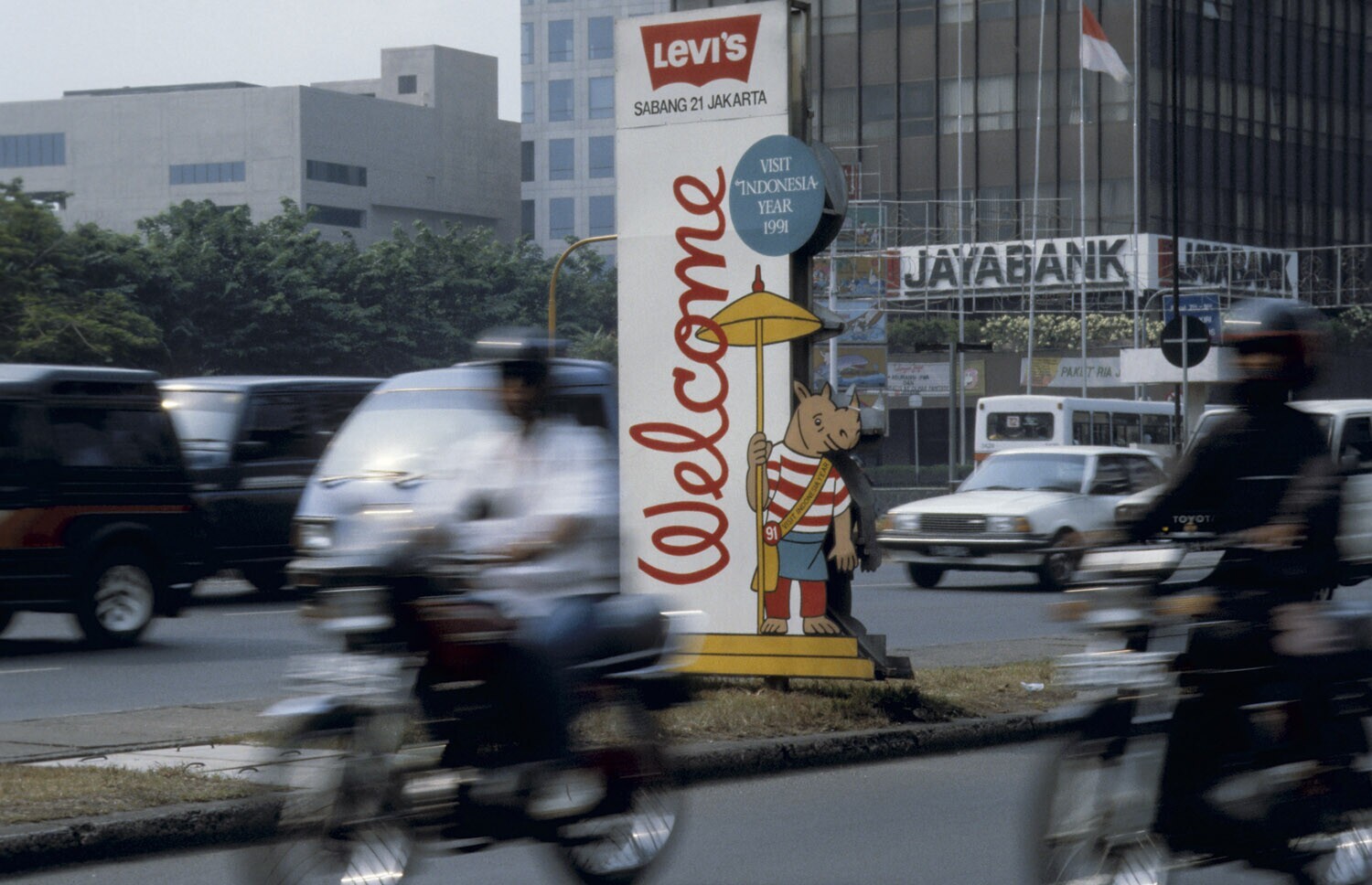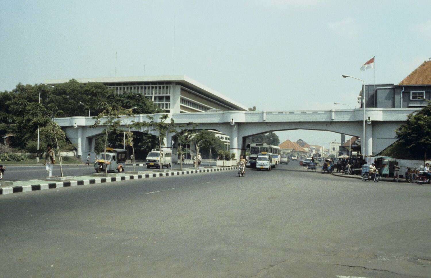 'Java, Jakarta. Straatbeeld; verkeersdrukte, reclame...