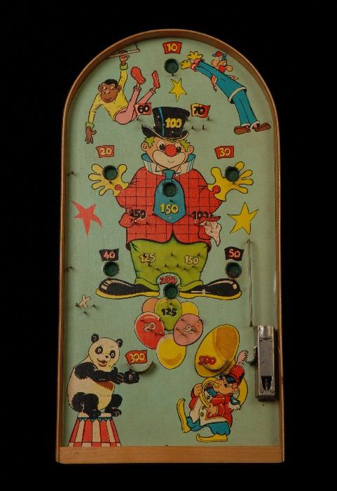 Knikkerspel of trekbiljart met afbeeldingen van kind...