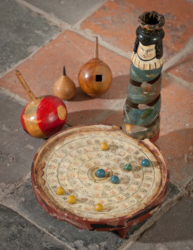 Knikkerspel met aanduwstok (deze ontbreekt)