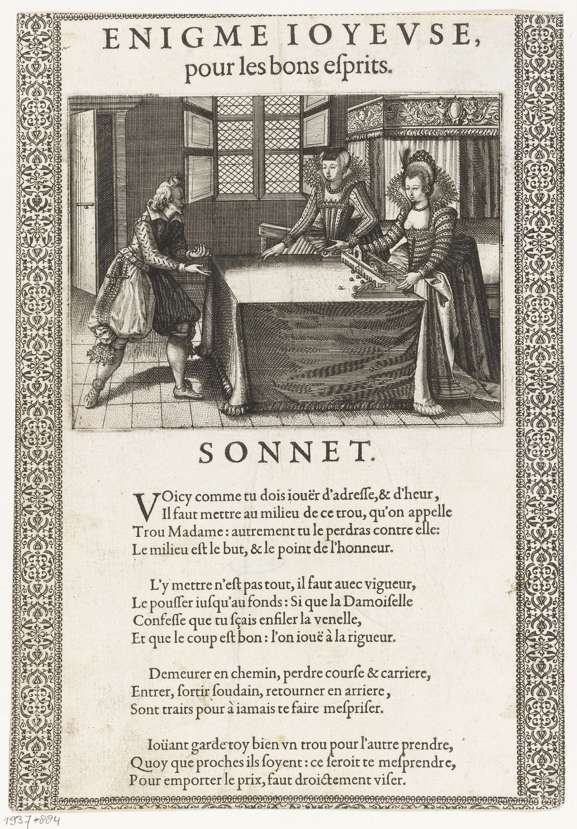 Heer en twee dames bij een knikkerspel