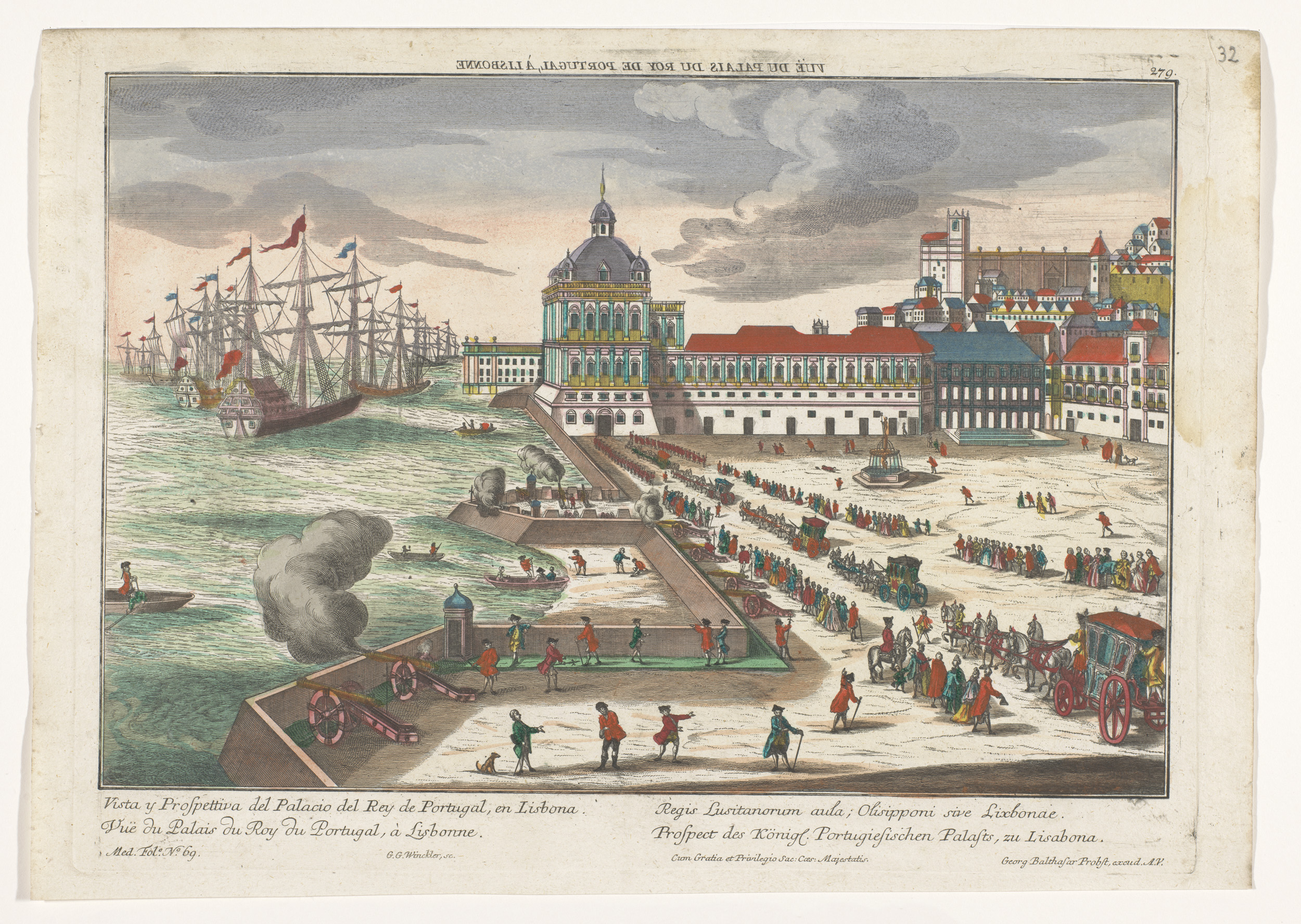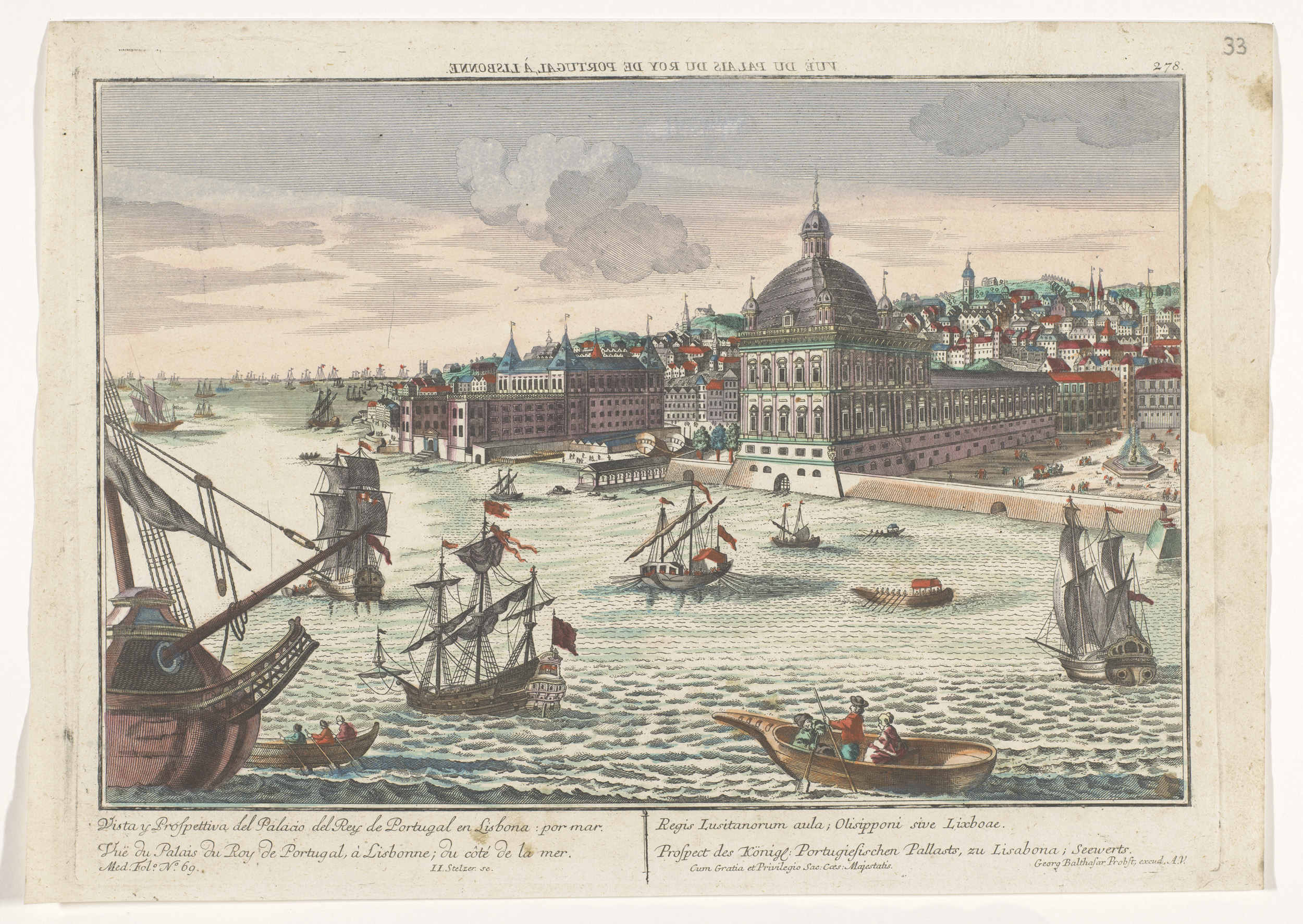 Gezicht op het Koninklijk Paleis te Lissabon gezien ...
