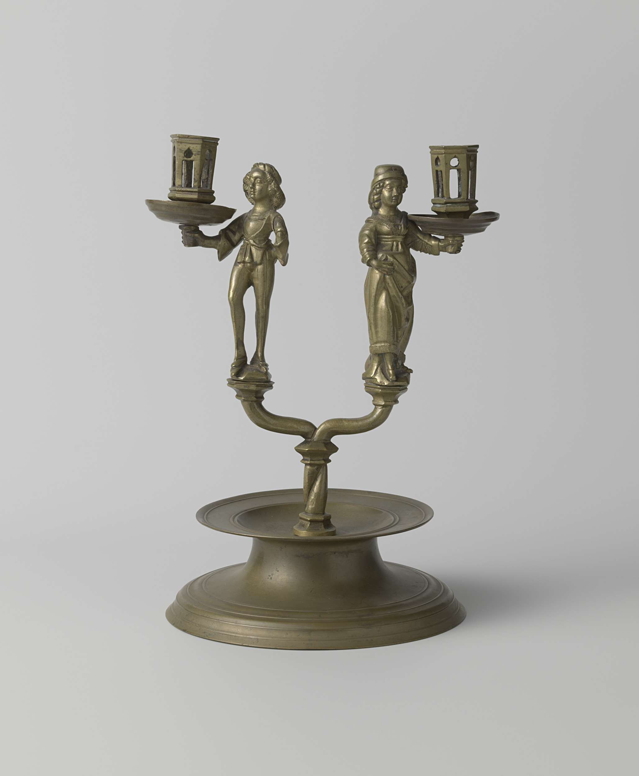Twee-armige kandelaar met een mannen- en een vrouwen...