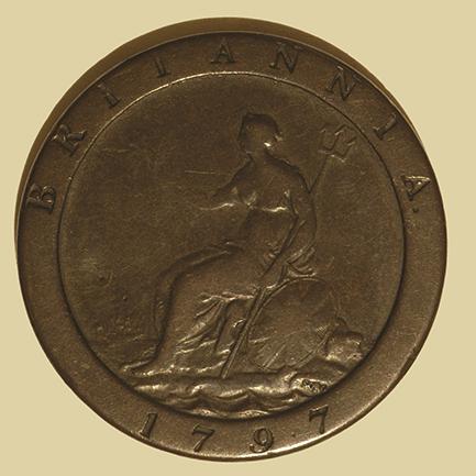 Smokkeldoosje van pennymunten gemaakt, circa 1800