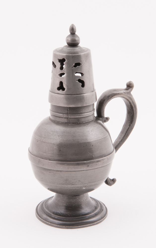 Peperstrooier van tin, vervaardigd door Kurz te Tiel...