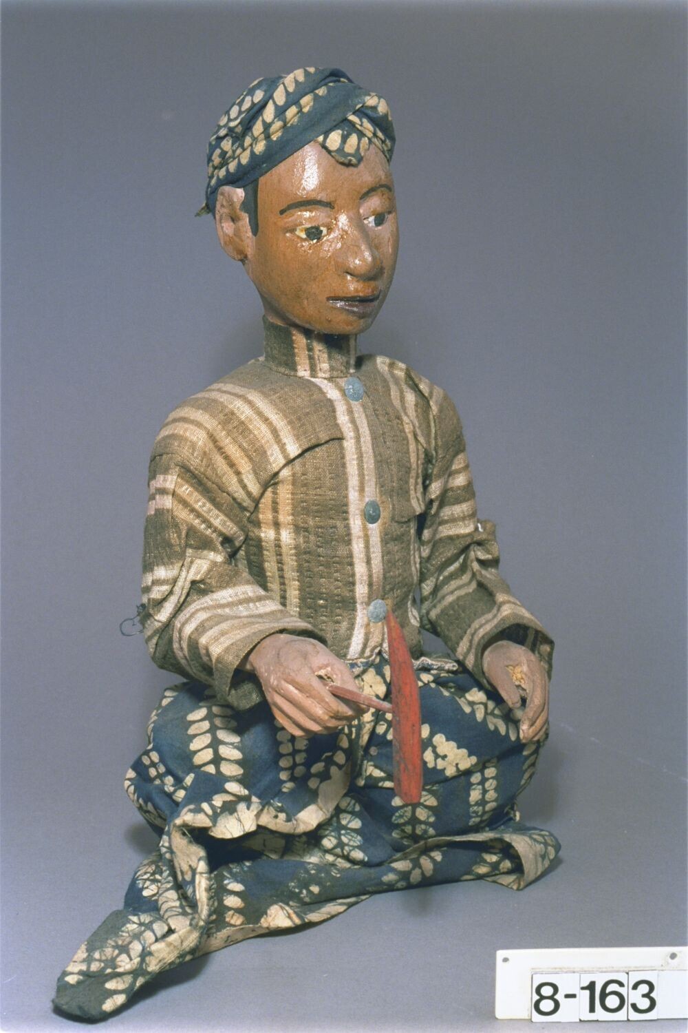 Houten pop, voorstellende de voorman van het gamelan...