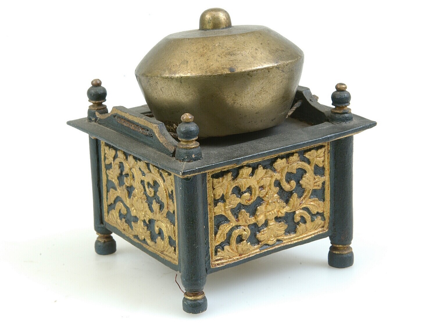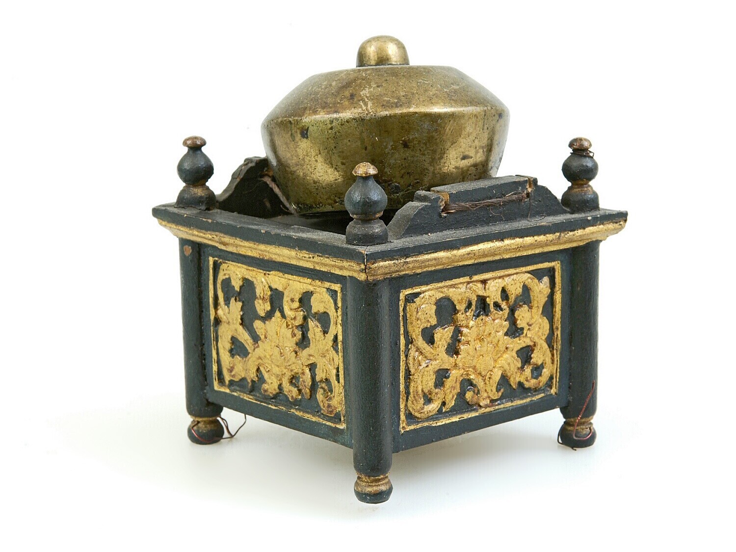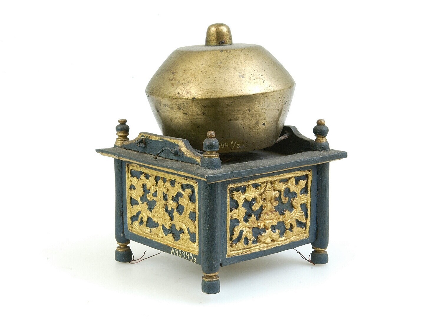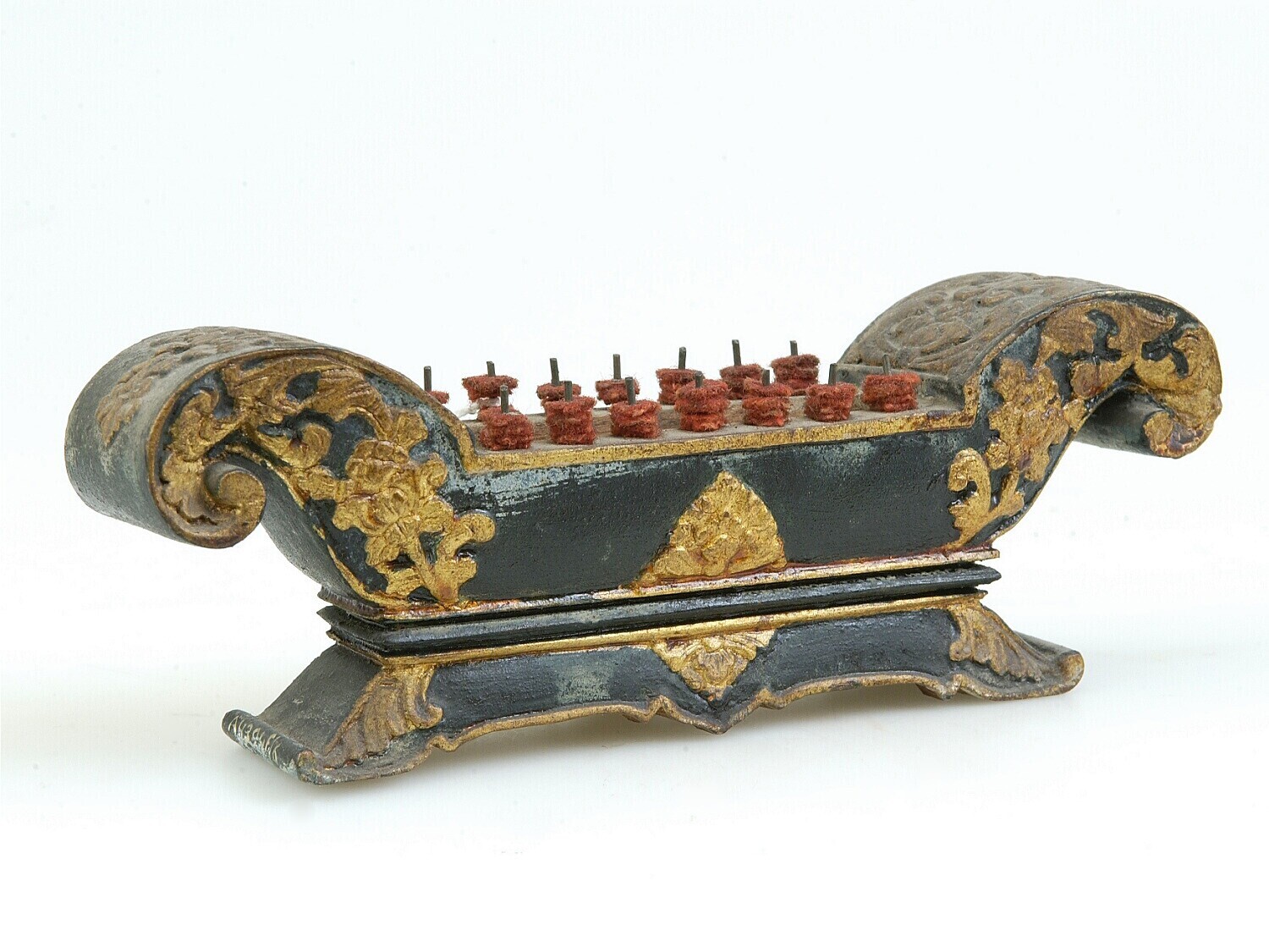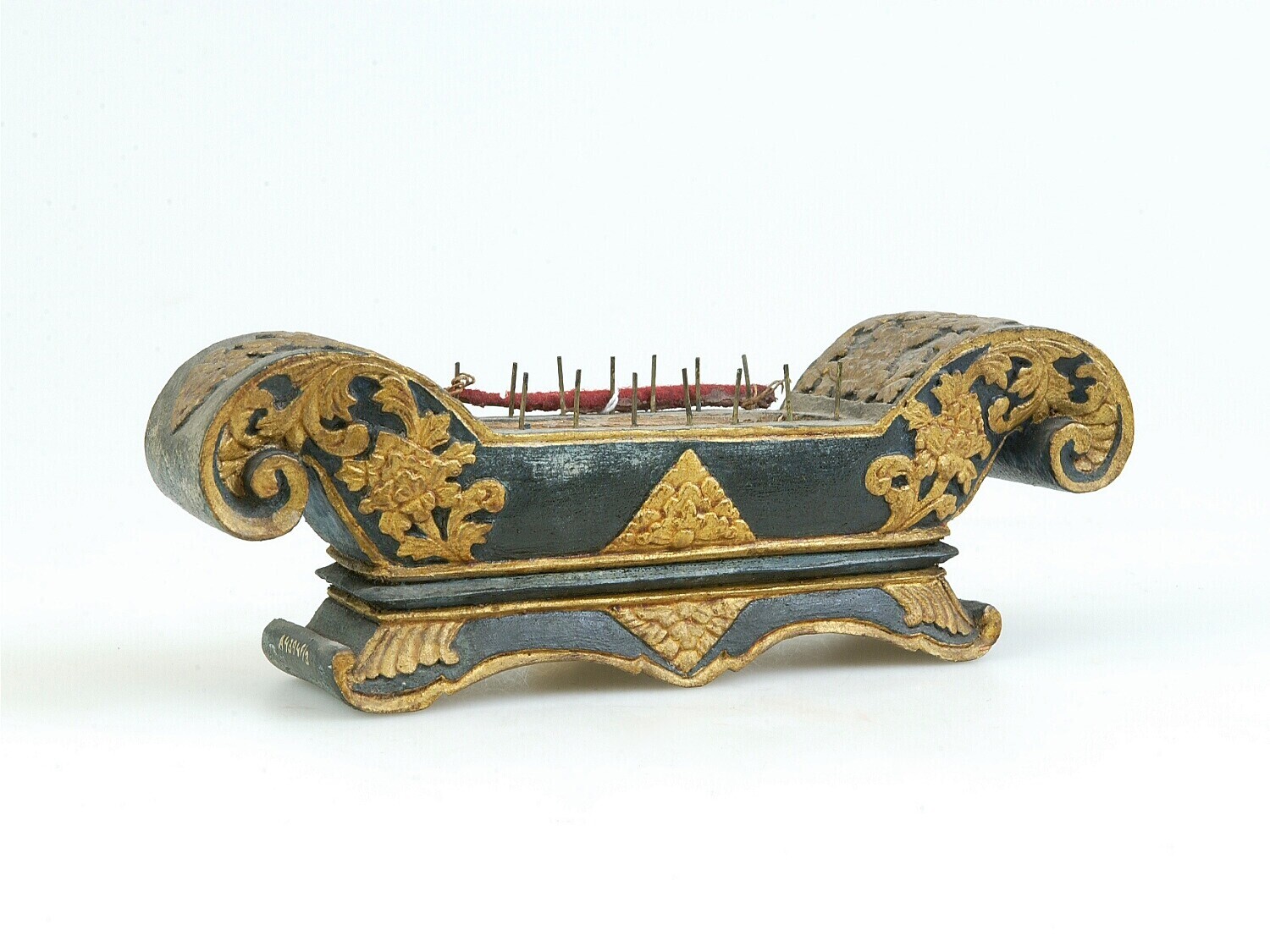 Model van hout van een stel gongs met standaard, ond...