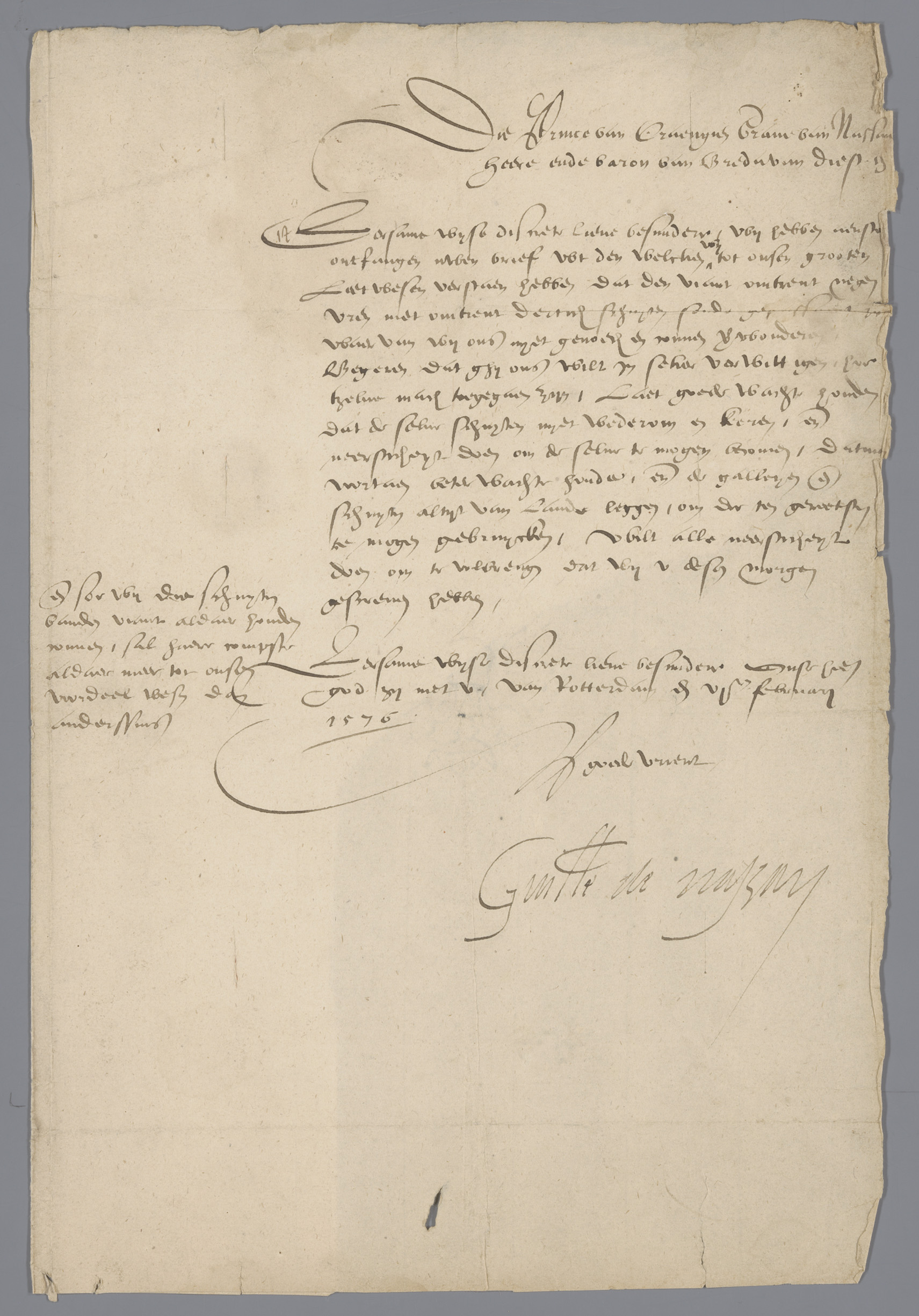 Dubbelgevouwen blad papier, met facsimilé van een br...