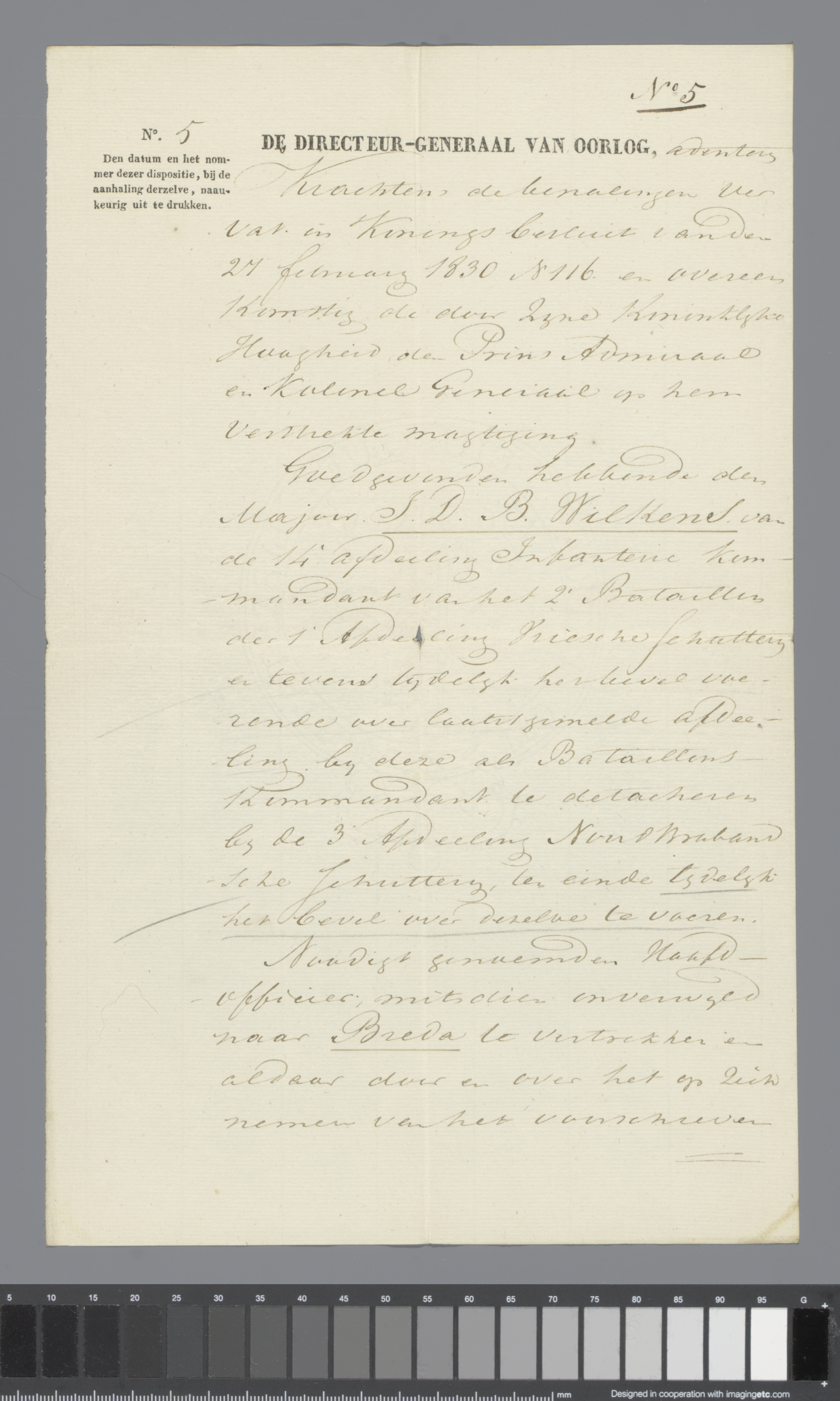 Bevordering van J.D.B. Wilkens tot majoor en benoemi...