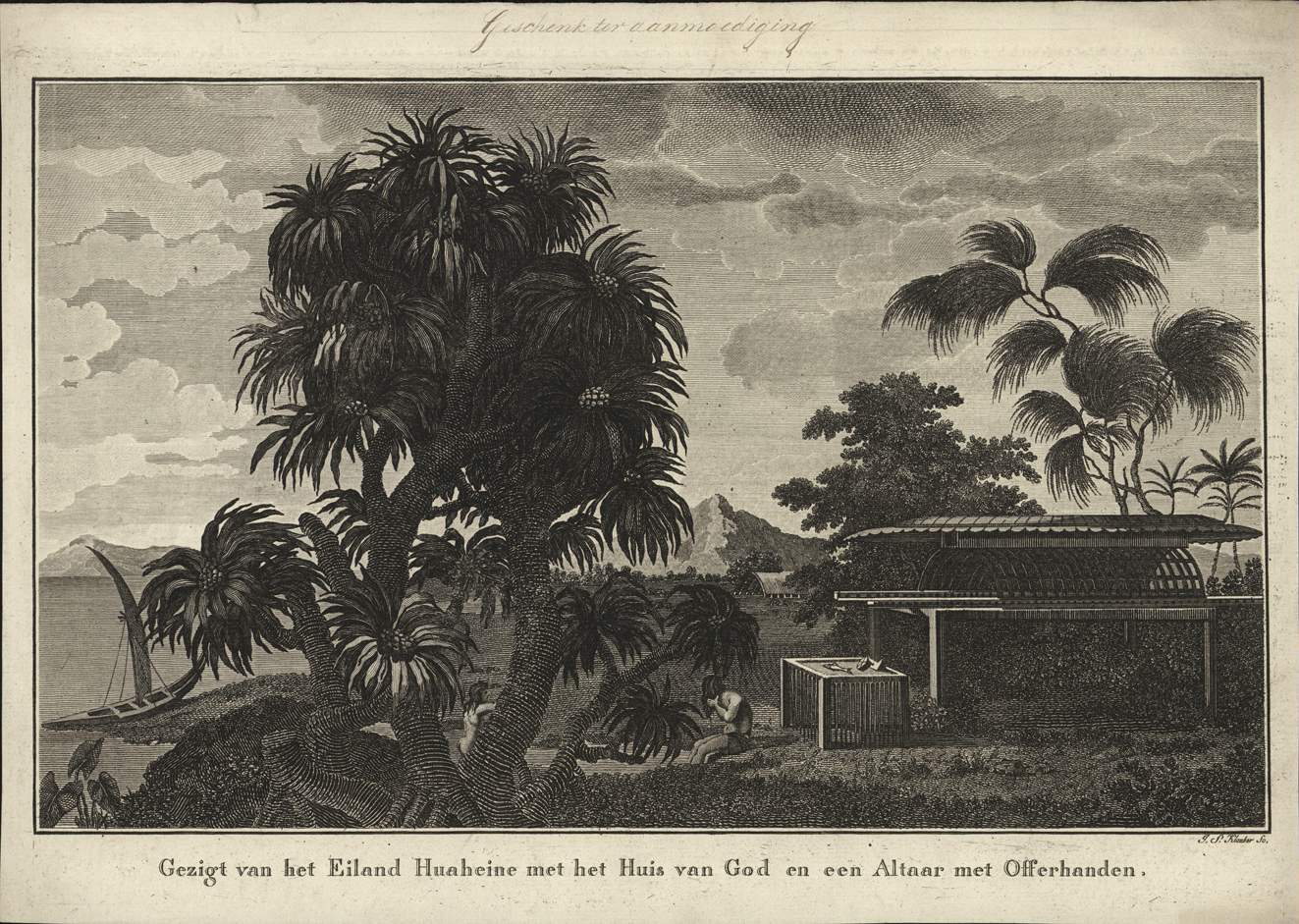 Gezicht van het Eiland Huaheine met het Huis van God...