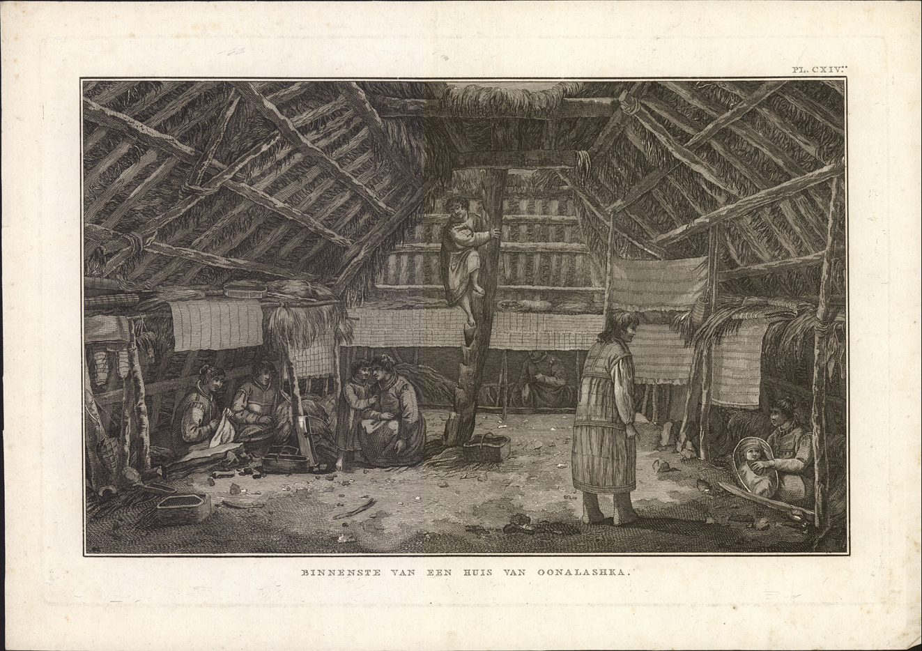 Binnenste van een huis van Oonalashka