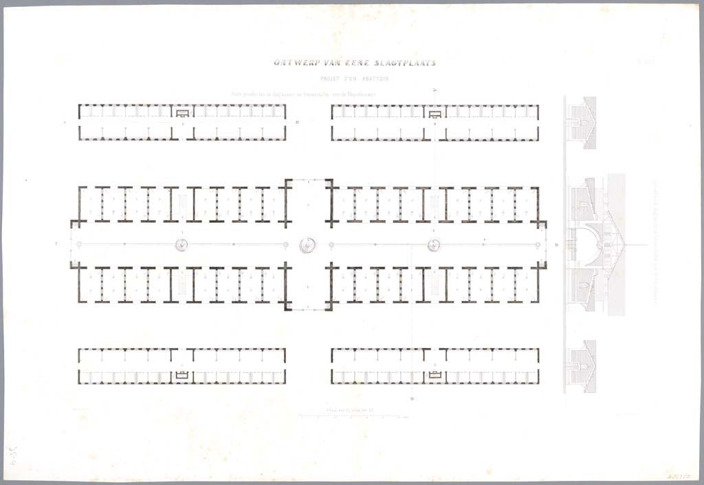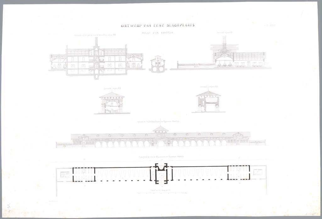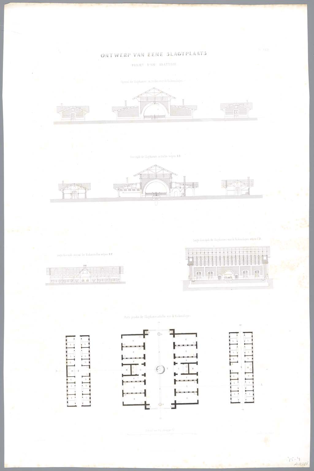 Ontwerp van eene slagtplaats. opstand,-en doorsnede ...