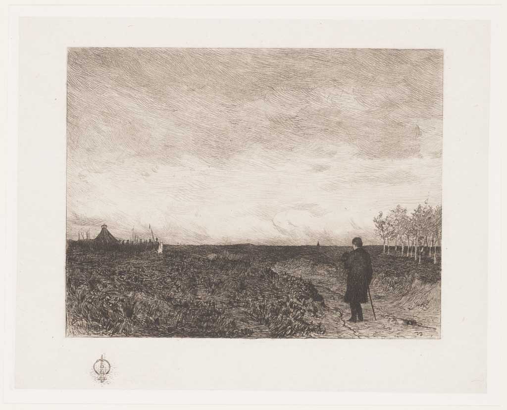 Landschap met wandelende man