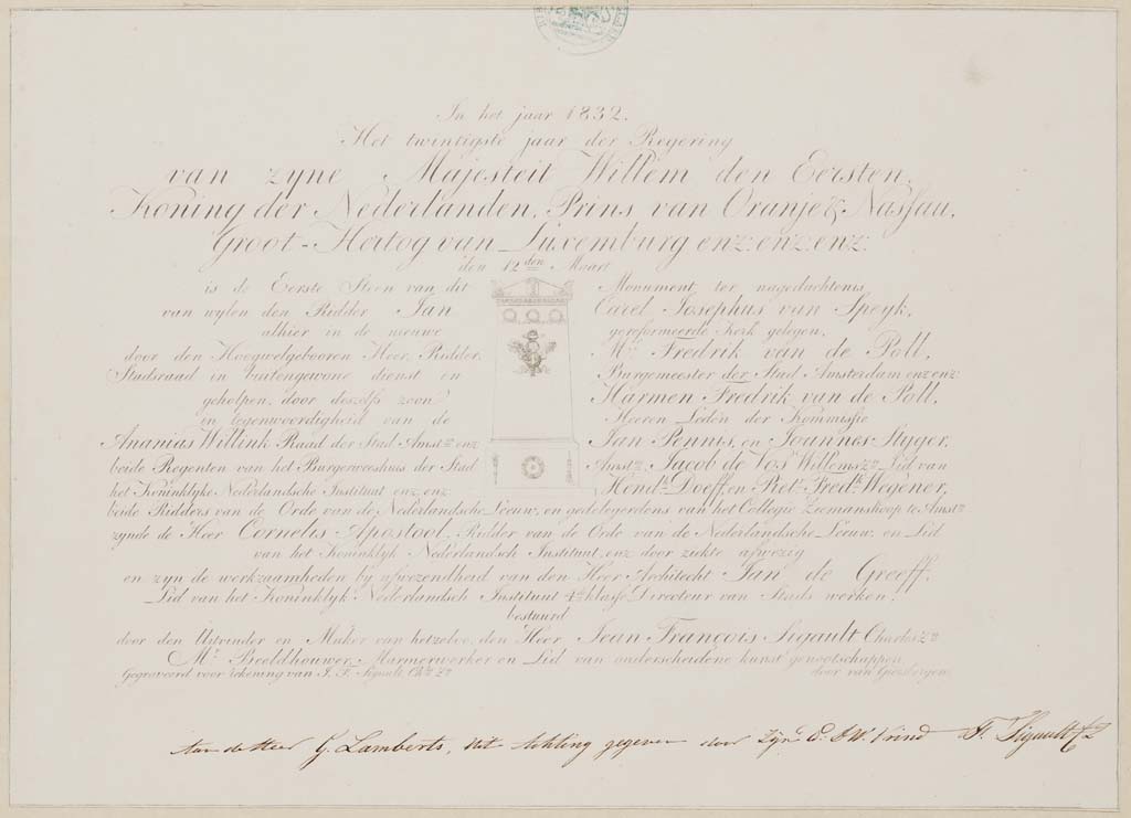 Papier-afdruk van keerzijde penning t.g.v. het eeuwf...